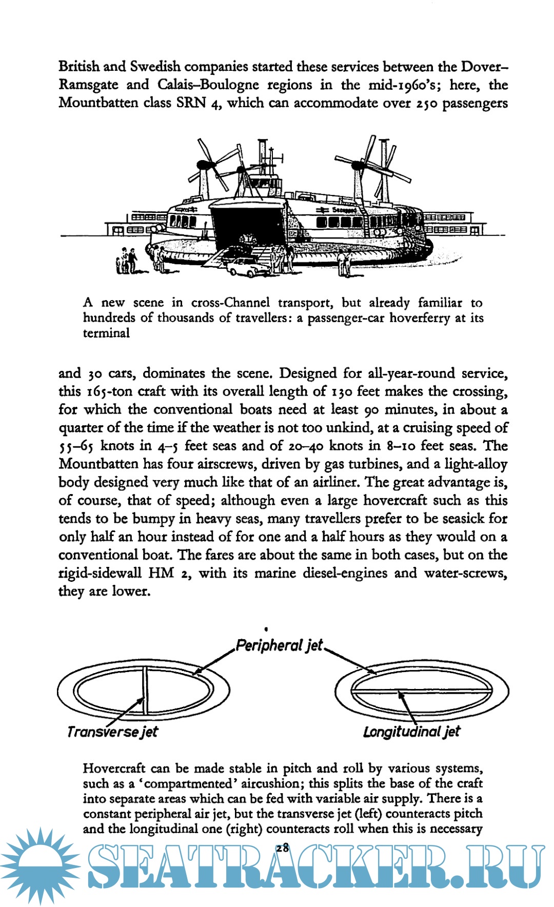 Year: 1972 Language: English Author: Larsen E. Genre: Technical literature Publisher: J. M. Dent & Sons Ltd Format: PDF Quality: eBook Pages count: 64 Description: Is it a ship or an aircraft? Strange new means of transport have sprung up in our time, but none stranger than hovercraft and hydrofoils. We are not even quite sure how to classify them-the air-cushion vehicle (as the hovercraft is called in technical language) flies above the water and the ground like a bird, but can't rise more than a few feet; the winged or legged boat-the hydrofoil-almost leaves the water, but cannot move without it. These surface-skimming craft (another technical term) have opened a new world of inventive imagination to our transport designers. We shall probably travel in air-cushion vehicles at high speed over land as we already do over the water; aero-trains, hovercars, giant ocean-going hydrofoil ships are in the offing, and air-cushion techniques have been ntroduced in medicine and industry. Oddly enough, even a combination of hovercraft and hydrofoil boat is being developed.