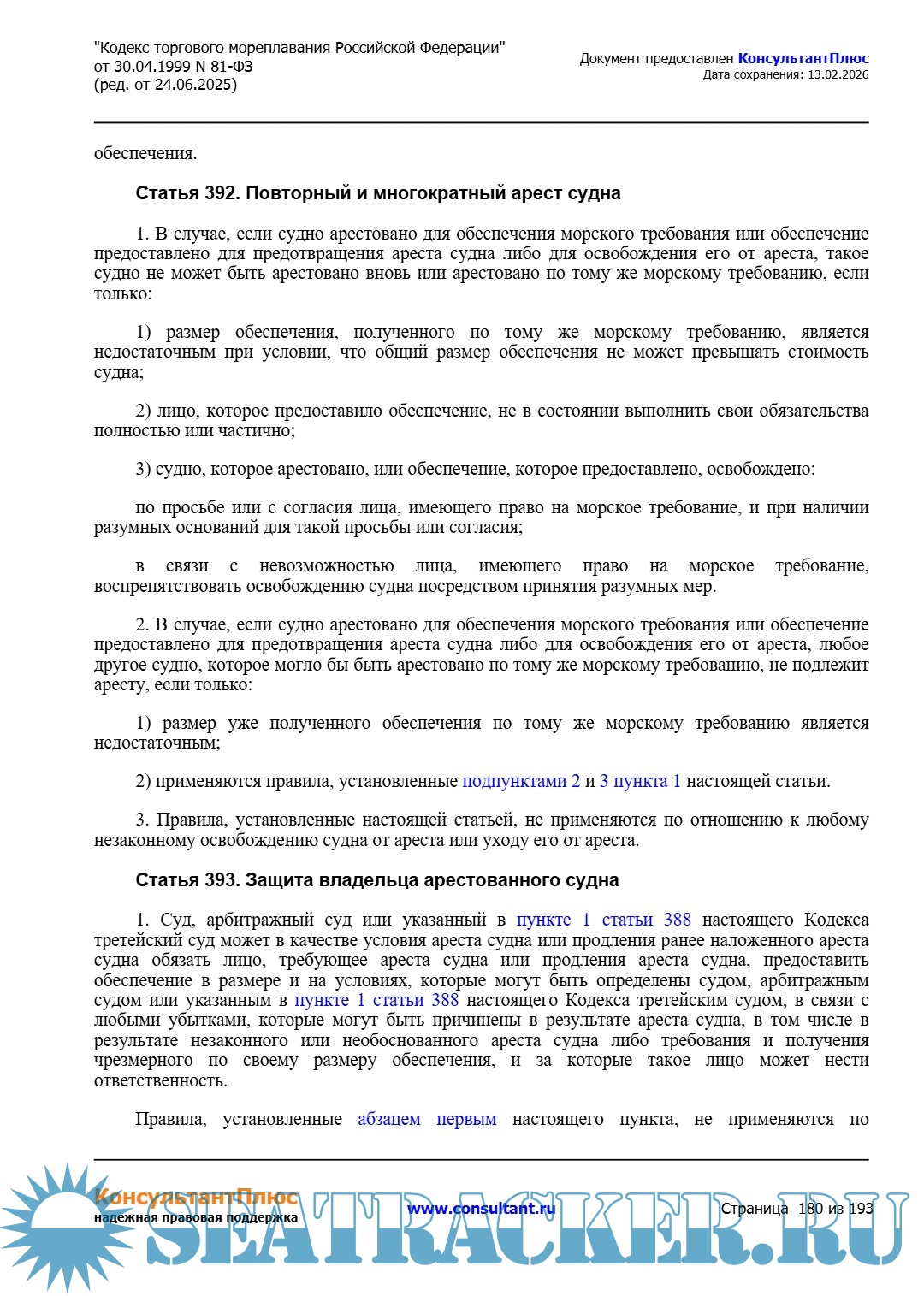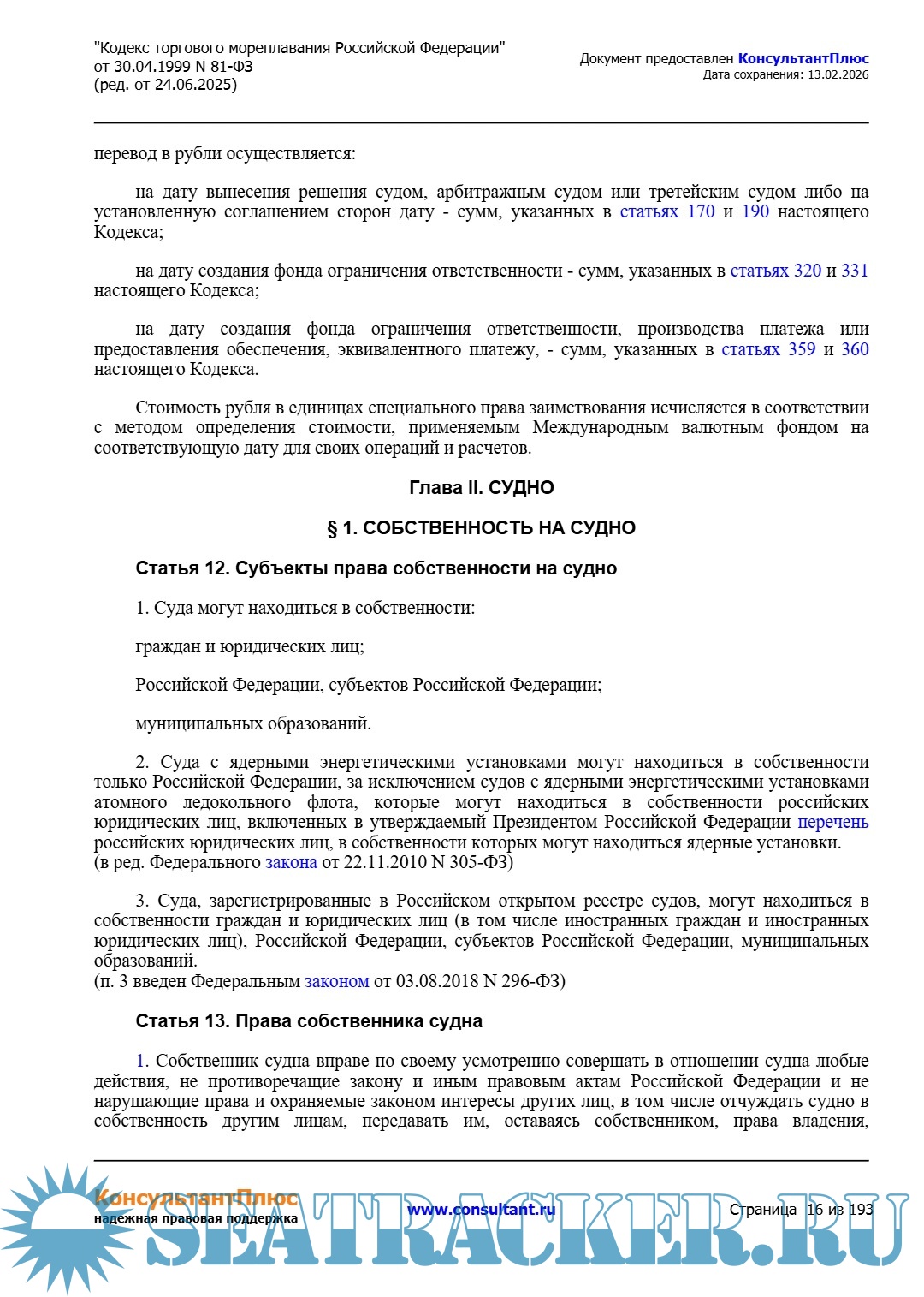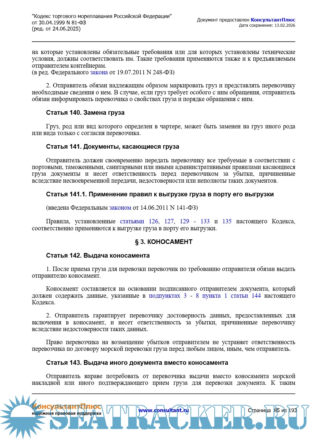 Кодекс торгового мореплавания Российской Федерации (ред. от 24.06.2025)