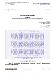 Описание: Настоящий Кодекс регулирует отношения, возникающие из торгового мореплавания. Отношения, возникающие из торгового мореплавания, регулируются также издаваемыми в соответствии с настоящим Кодексом другими федеральными законами (далее - законы), указами Президента Российской Федерации и постановлениями Правительства Российской Федерации (далее - иные правовые акты Российской Федерации).