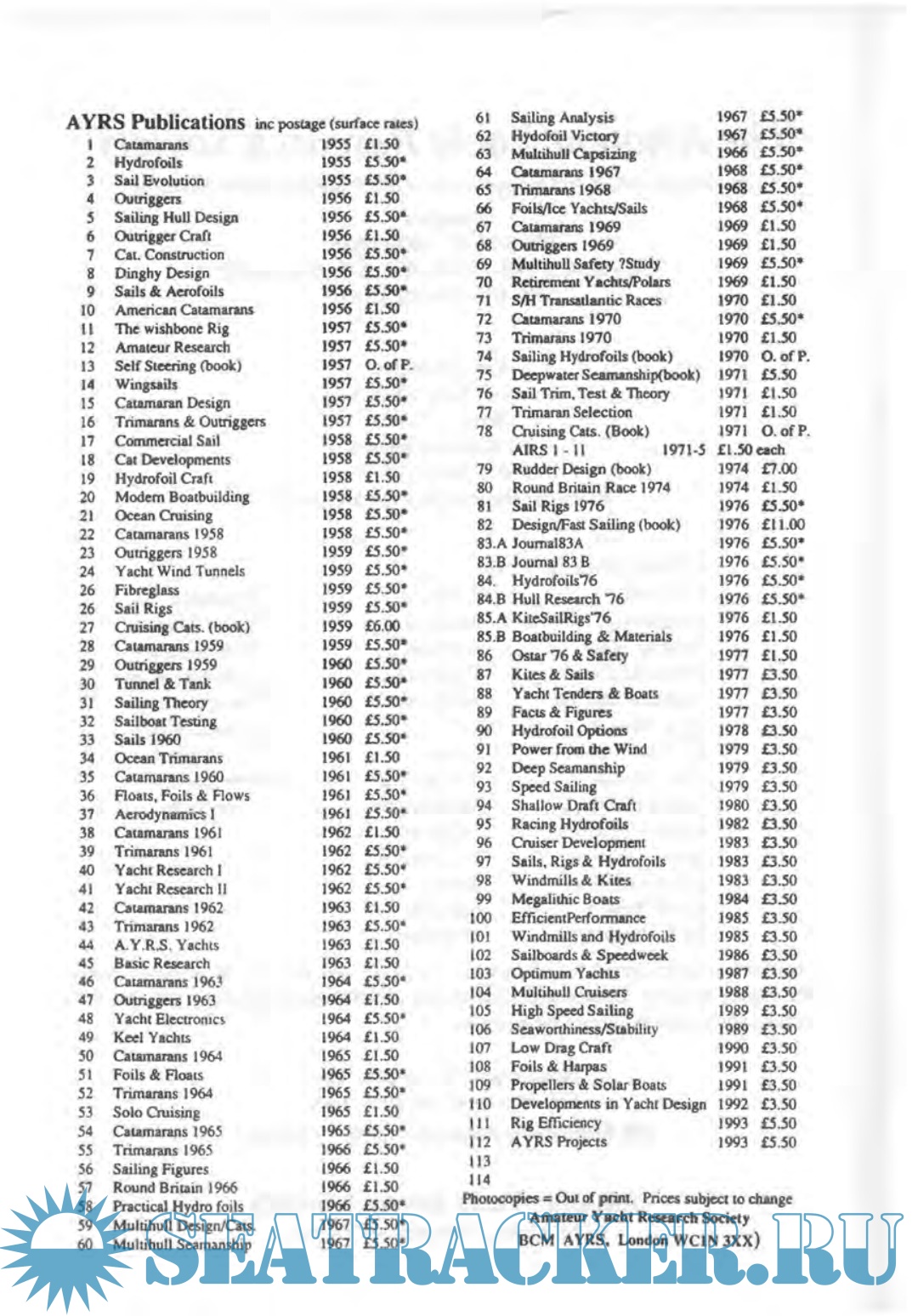 A.Y.R.S. Publication No.112 — AYRS Projects