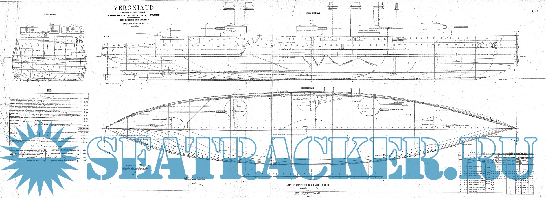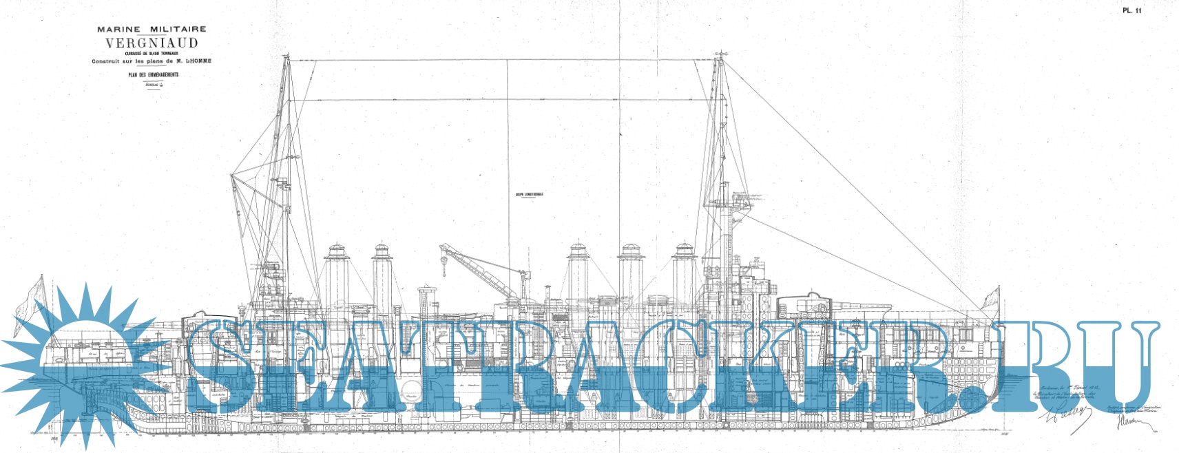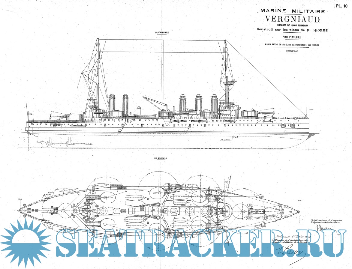 Архивные чертежи французского линкора VERGNIAUD 1910 год