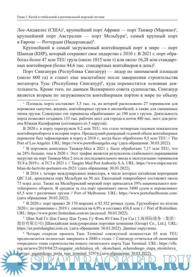 поддержку экономического развития государства. В монографии раскрывается современное лидерство Китая в мировой портовой отрасли, сформировавшееся в жесткой конкурентной борьбе крупнейших портов Восточной Азии. Анализируются этапы развития портов КНР и роль плановой экономики в этом процессе, современная структура портового хозяйства КНР и ведущих портов страны. Рассматриваются новые тенденции и перспективы развития как континентальных, так и зарубежных портов КНР.