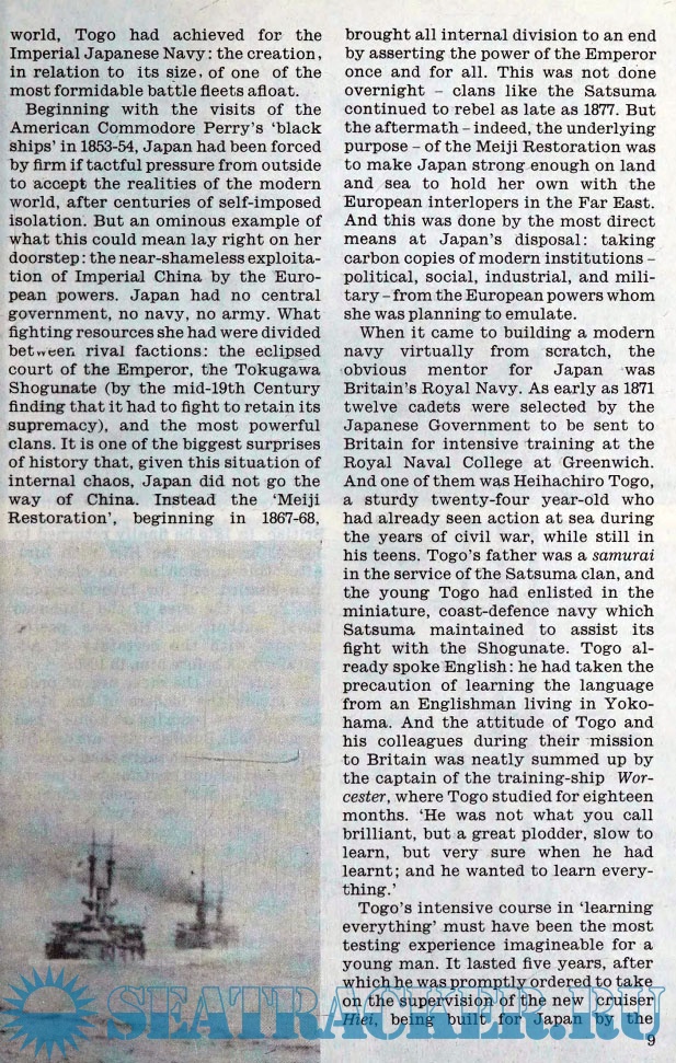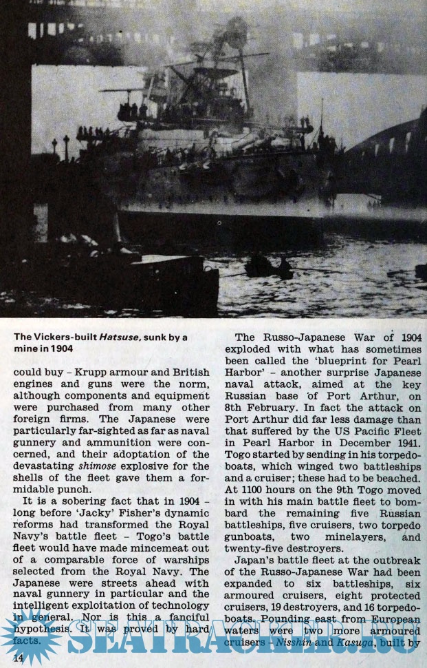 Description: As short as this book is (only 160 pages) "Japanese High Seas Fleet" by Richard Humble covers a great deal of ground. Starting with The Meiji Reforms of 1867-1868, the book presents the social context of the nation of Japan as the country moved toward the crucial Russo-Japanese War of 1904. The famous naval battle off the Korean peninsula near Tsushima in that war of 1904 made a national hero of Admiral Heihachiro Togo and created a strong impulse in the Japanese public for a strong navy. This pursuit of a strong navy caused Japan to actively engage in an naval arms race with Britain and the United States in the 1920s. The navy that was created and enlarged during this time came to have strong doubts about the any war with the Western Powers. This put them at odds with the Japanese Army and General Hideki Tojo, who would become Japan's famous wartime Prime Minister in October of 1941. This Japanese Army/Navy conflict is portrayed accurately in the 1970 movie "Tora Tora Tora." However, it was the navy that was tasked with the job of winning the war that the navy felt could not be won. Thus, the navy--particularly Admiral Isokoru Yamamoto came up with the extremely risky strategy of a sneak attack on Pearl Harbor as the only way to win the war. After the battle of Midway in June of 1942, Humble's book tapers off quite quickly. This was for good reason. By 1943, all the great Japanese aircraft carriers were gone and in another year much of the rest of the Japanese surface fleet was gone.