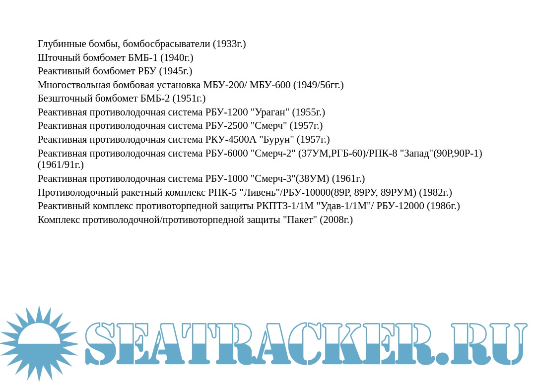 Описание: Приведены ТТХ, общие виды и краткое описание противолодочных бомбометов СССР и России.