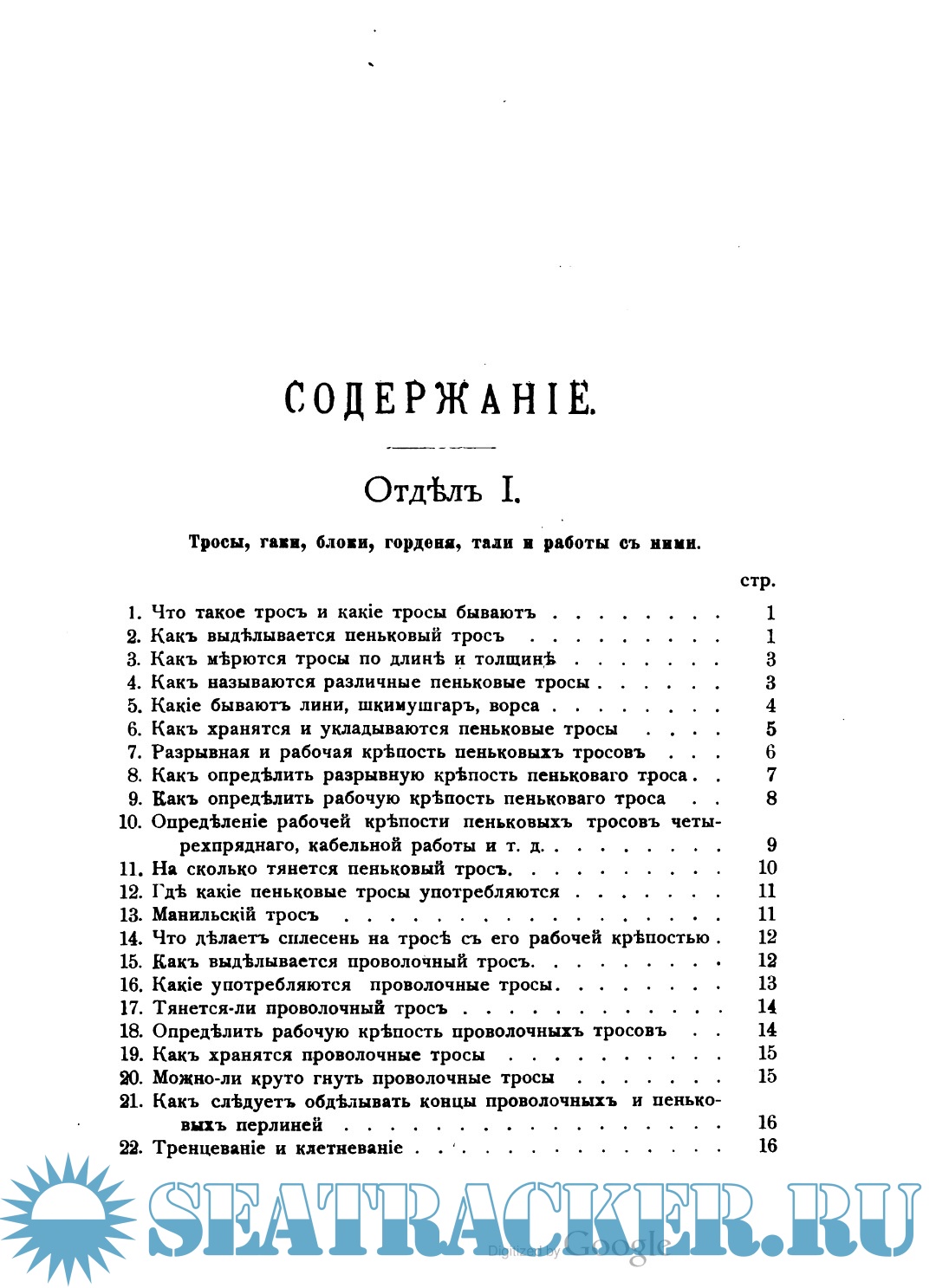 Глава о такелажныхъ работахъ , за небольшими измѣненіями и исправленіями взята изъ сочинения и записокъ по морской практикѣ В. Вахтина.