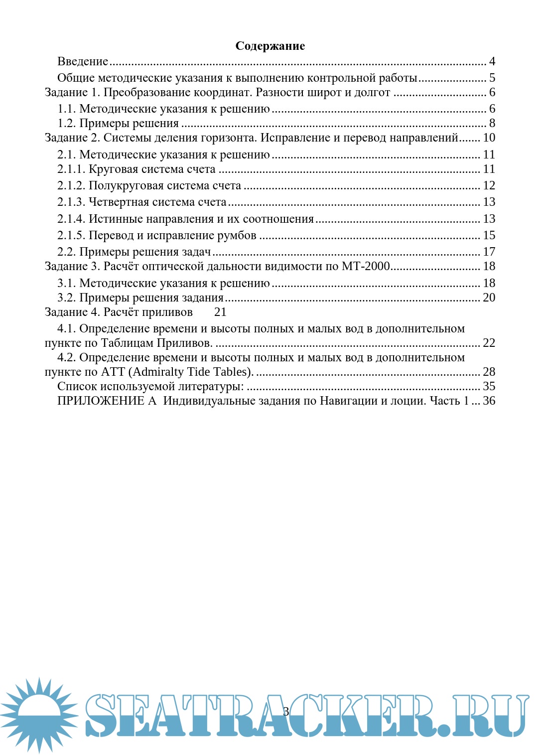 Практический материал, предназначенный для выполнения, полностью основан на конспекте лекций «Навигация и лоция». Задания для выполнения включены в данный практикум. В приложении представлены 100 вариантов заданий.