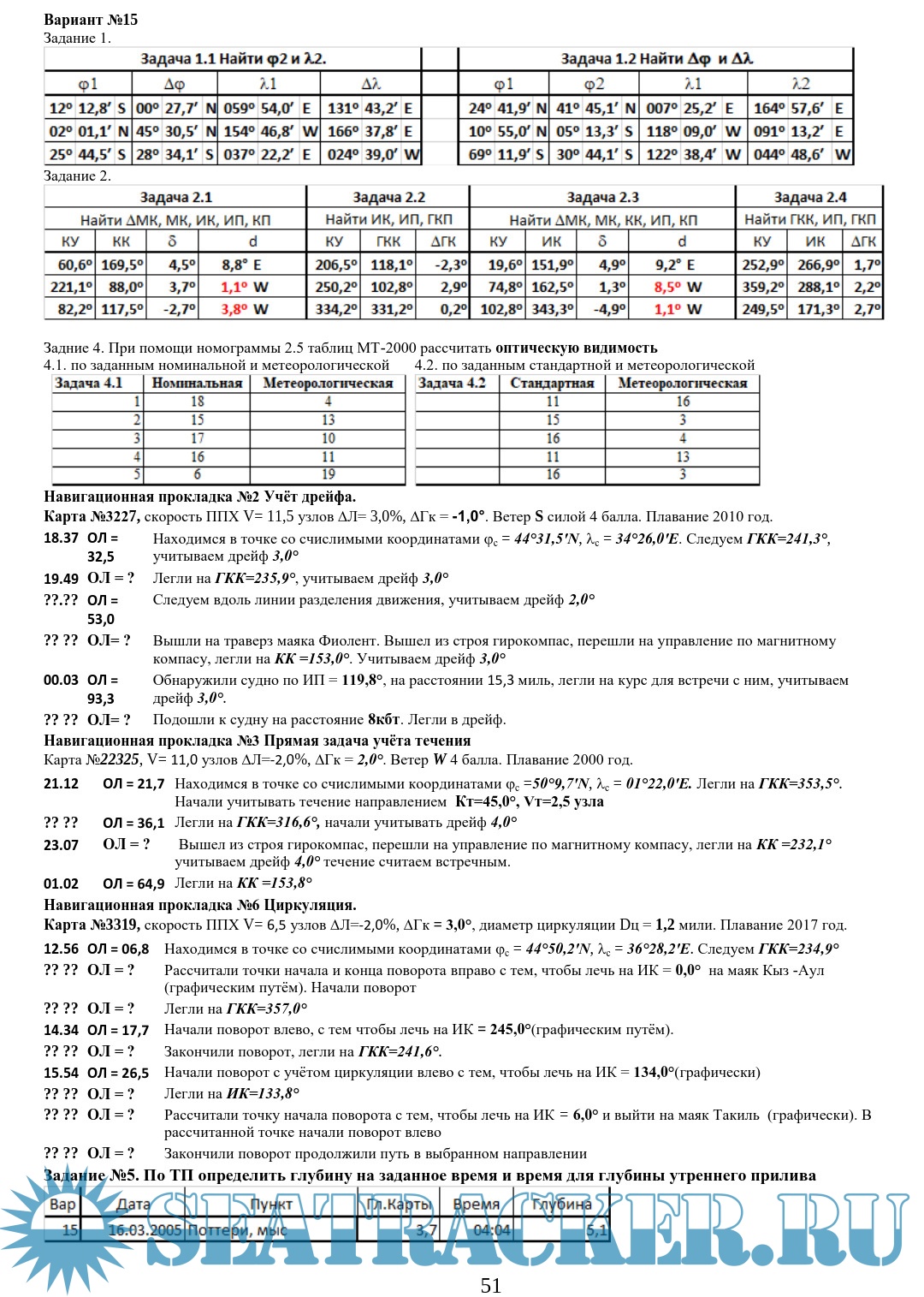 Приложение. Индивидуальные задания по Навигации и лоции. Часть 1.