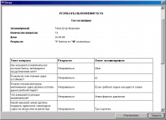 Автоматическое формирование отчета о результатах тестирования и оценки, производимое при подверждении ответа на последний вопрос задания.