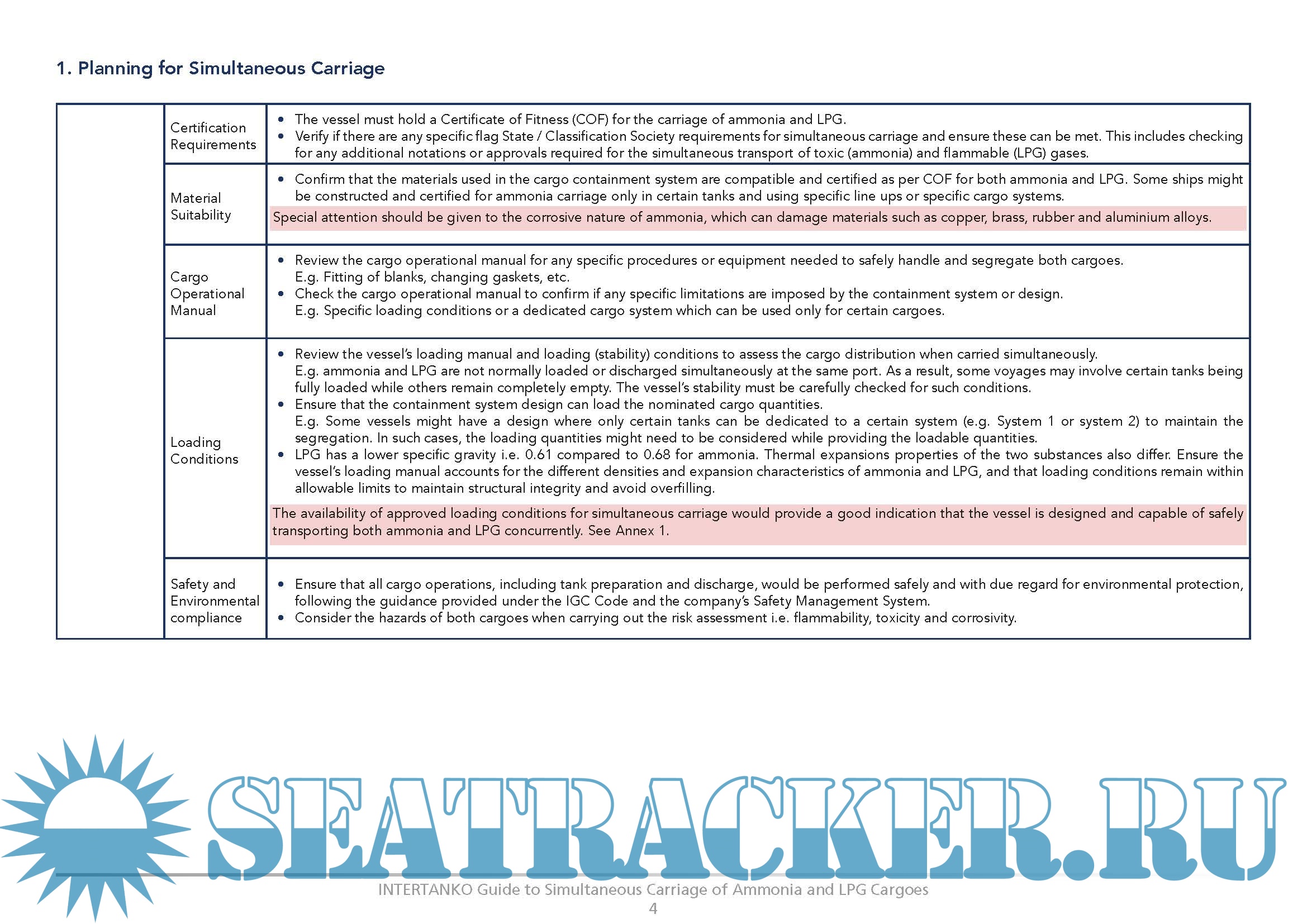 Year: 2026 Language: English Author: INTERTANKO Genre: Guide Publisher: INTERTANKO Edition: 1st Format: PDF Quality: eBook Pages count: 18 Description: In the recent past there has been an increase in interest within the industry for the simultaneous carriage of ammonia and LPG onboard gas ships. Historically, ammonia and LPG cargoes are not carried together during a voyage, therefore there is little experience within the industry for such simultaneous carriages. This document provides a comprehensive guide to conducting risk assessments and establishing the necessary safeguards for these carriages, but it is up to the Owner (based on a risk-assessment approach) to ultimately decide on the feasibility of proceeding to ensure the safe and efficient simultaneous carriage of ammonia and LPG. This document should be seen as a guide only, and the final safeguards applicable on board will be determined based on a detailed risk assessment. Some procedures included in this document are not only specific to the simultaneous carriage of LPG and NH3 but are standard cargo-handling practices. They have been included to highlight their importance and to illustrate how they can be applied during simultaneous carriage.