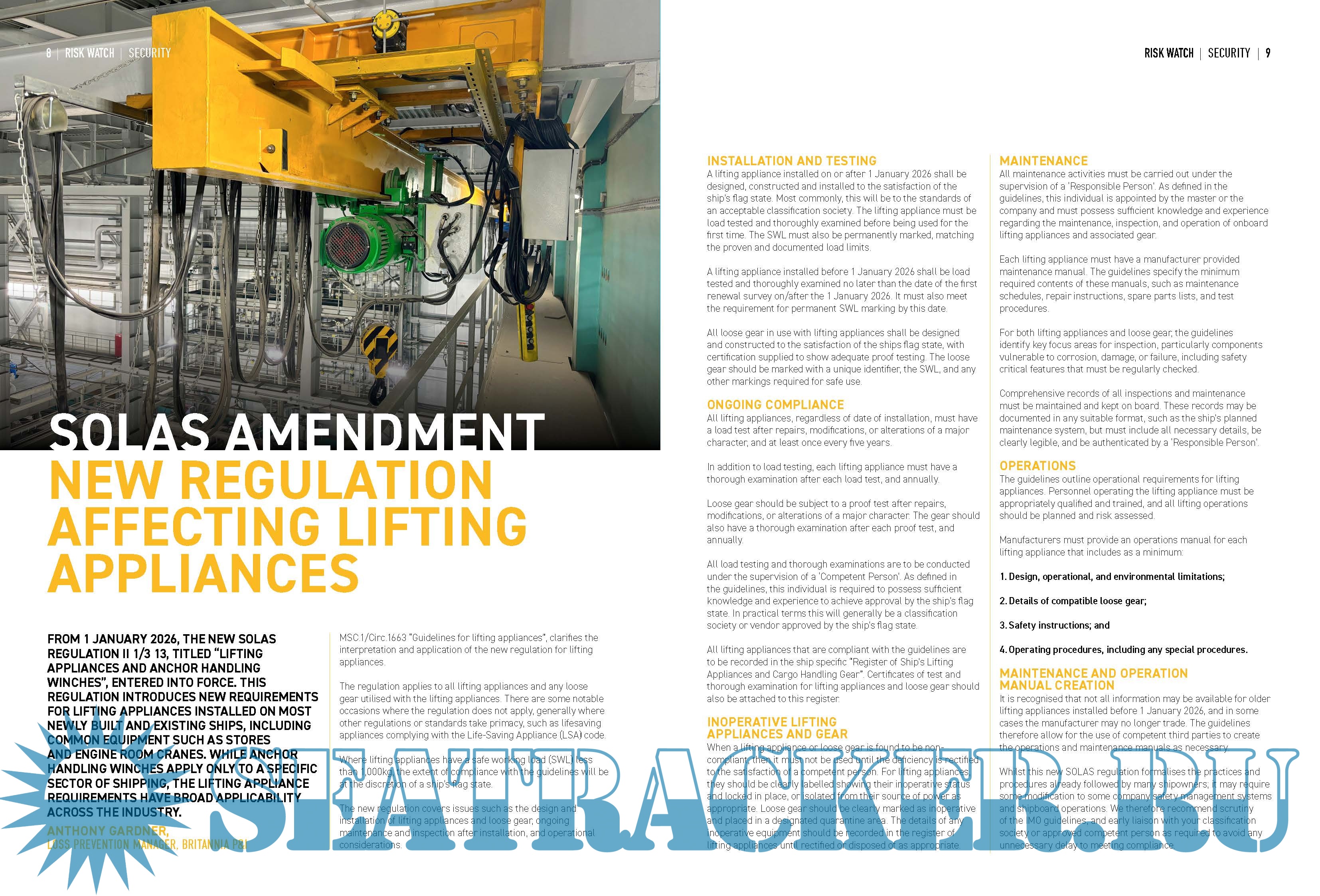 Description: This month’s Risk Watch brings together guidance that reinforces how safety continues to evolve through both technology and human awareness. From innovations such as vacuum mooring systems, which reduce manual handling risks and improve operational efficiency, to updated SOLAS lifting-appliance requirements, the focus remains on strengthening the foundations crews rely on every day.
