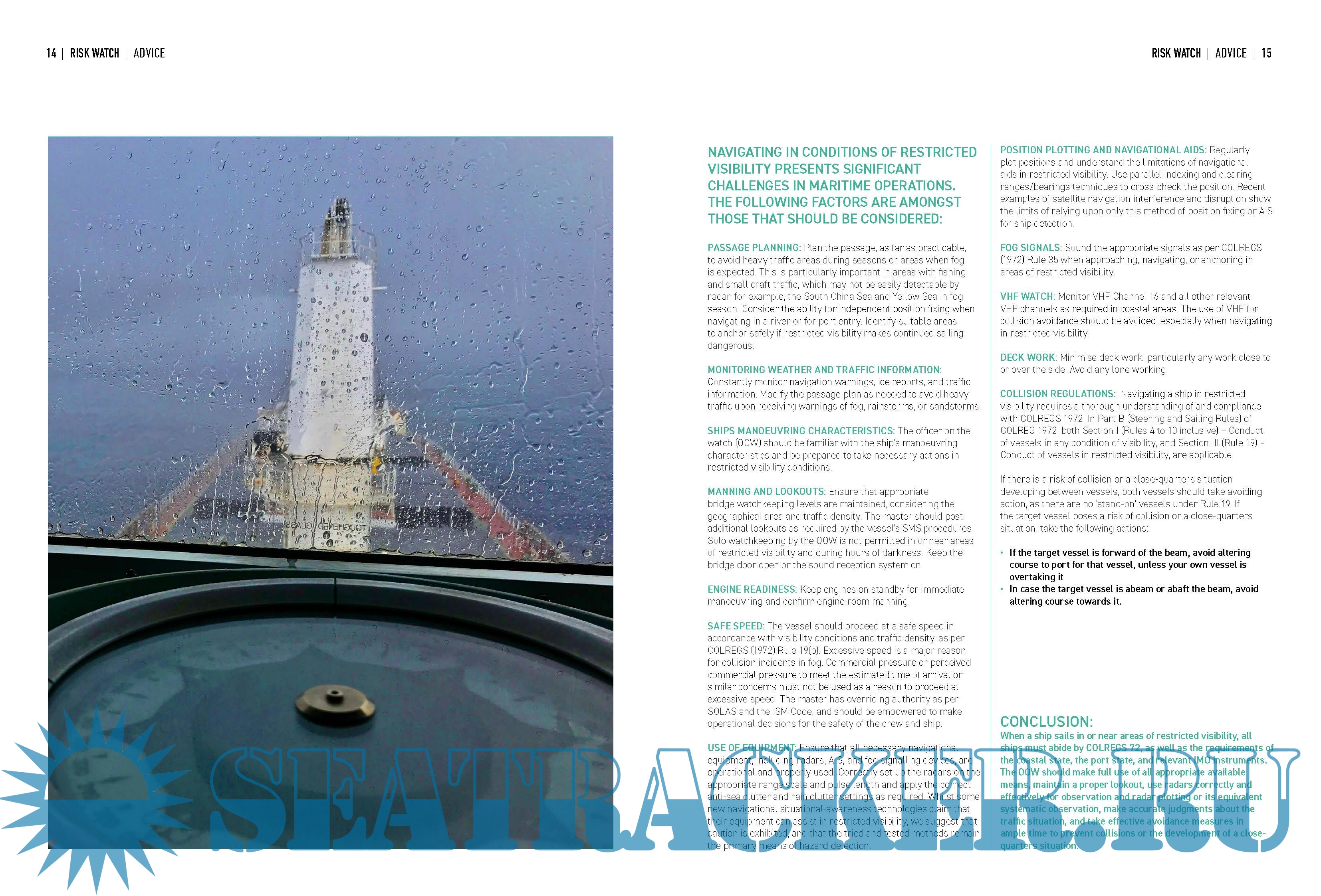 Also highlight the importance of informed decision making and clear communication. Updated IMO guidance on enclosed space entry for shore workers stresses education and supervised access, while our features on restricted visibility emphasises situational awareness and compliance with COLREGs.