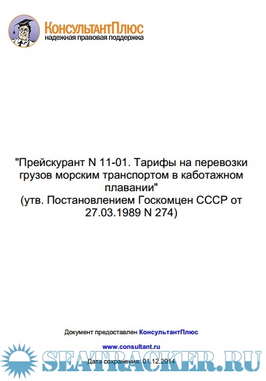Прейскурант 11-01 Каботажное плавание