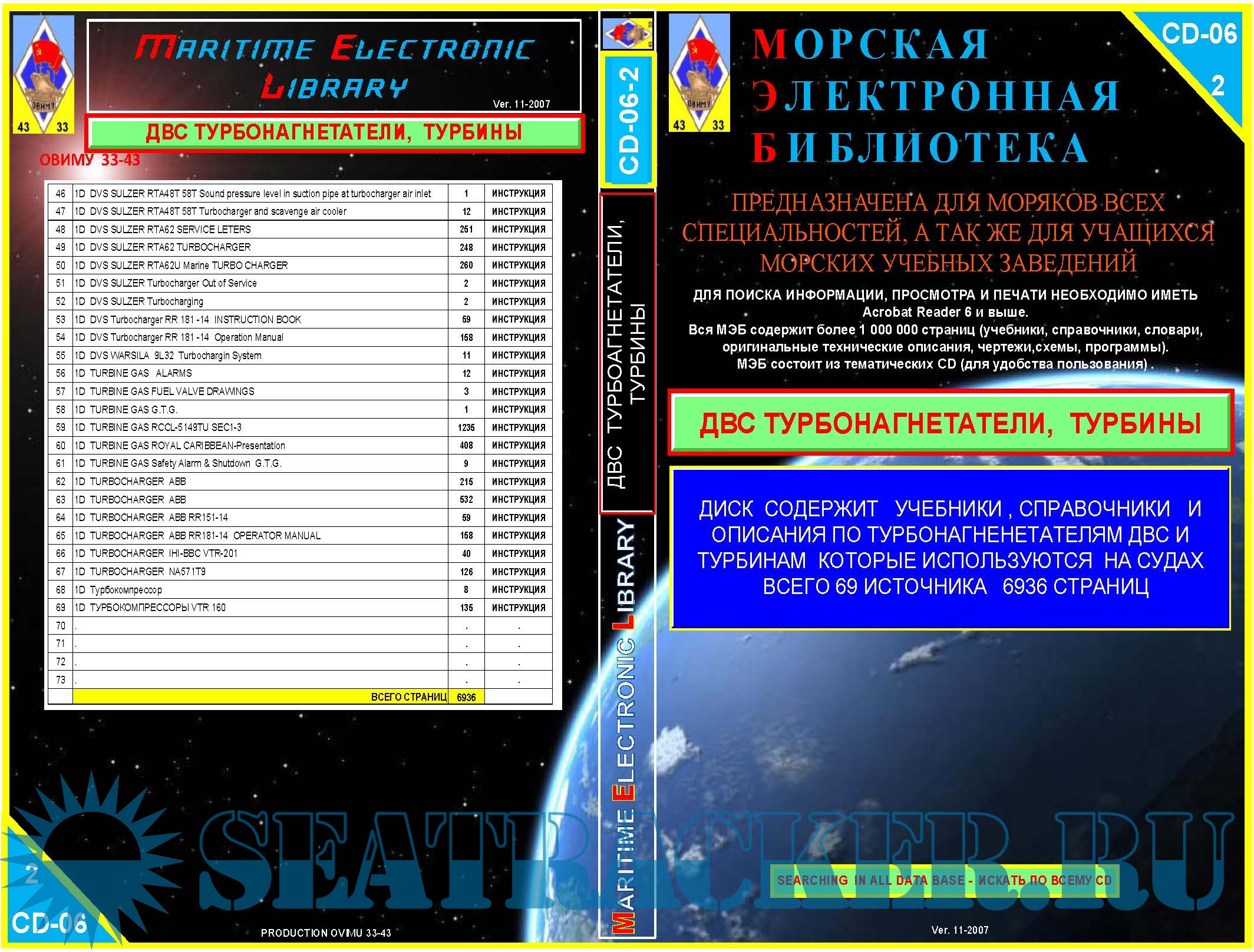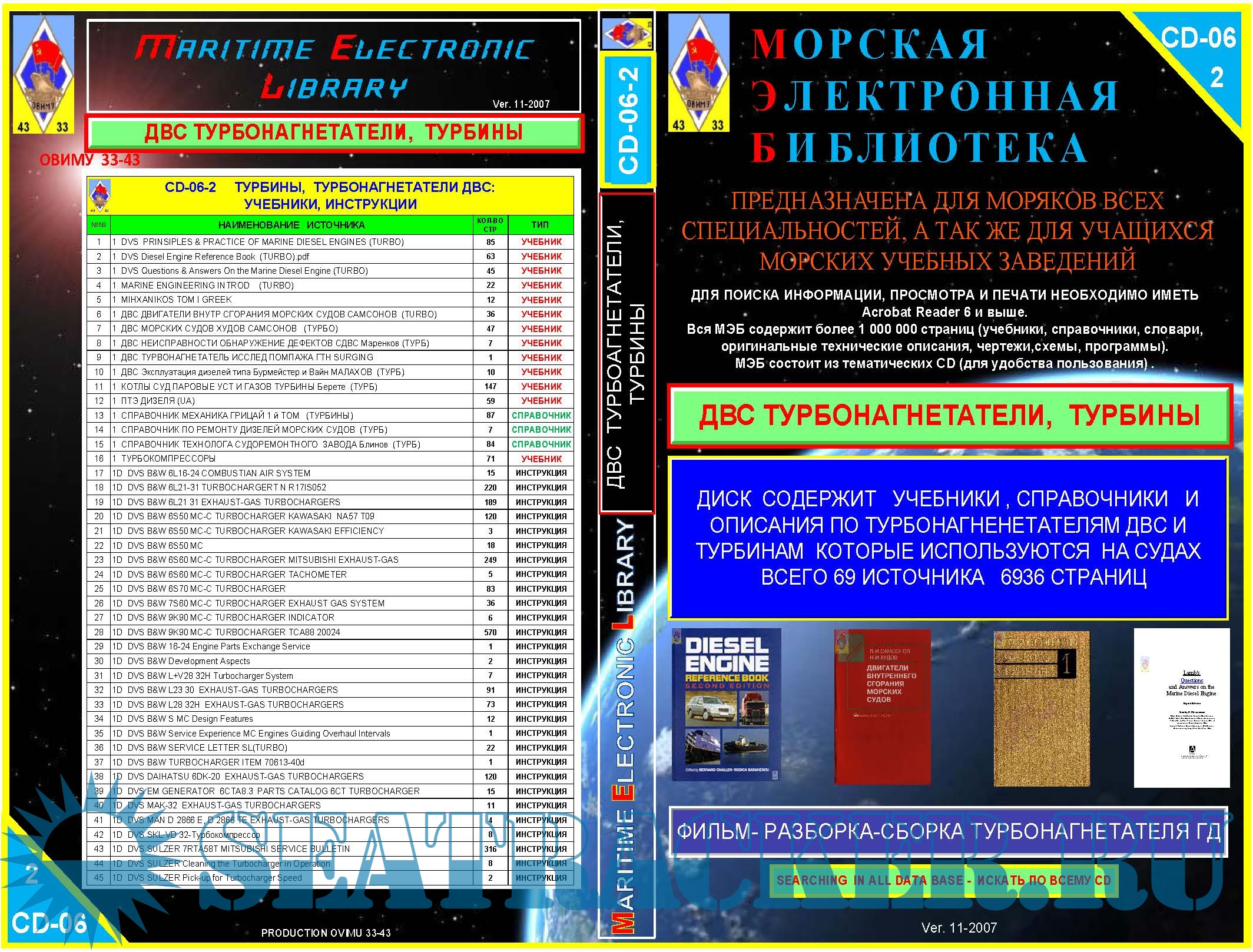 ДИСК СОДЕРЖИТ УЧЕБНИКИ , СПРАВОЧНИКИ И ОПИСАНИЯ ПО ТУРБОНАГНЕНЕТАТЕЛЯМ ДВС И ТУРБИНАМ КОТОРЫЕ ИСПОЛЬЗУЮТСЯ НА СУДАХ