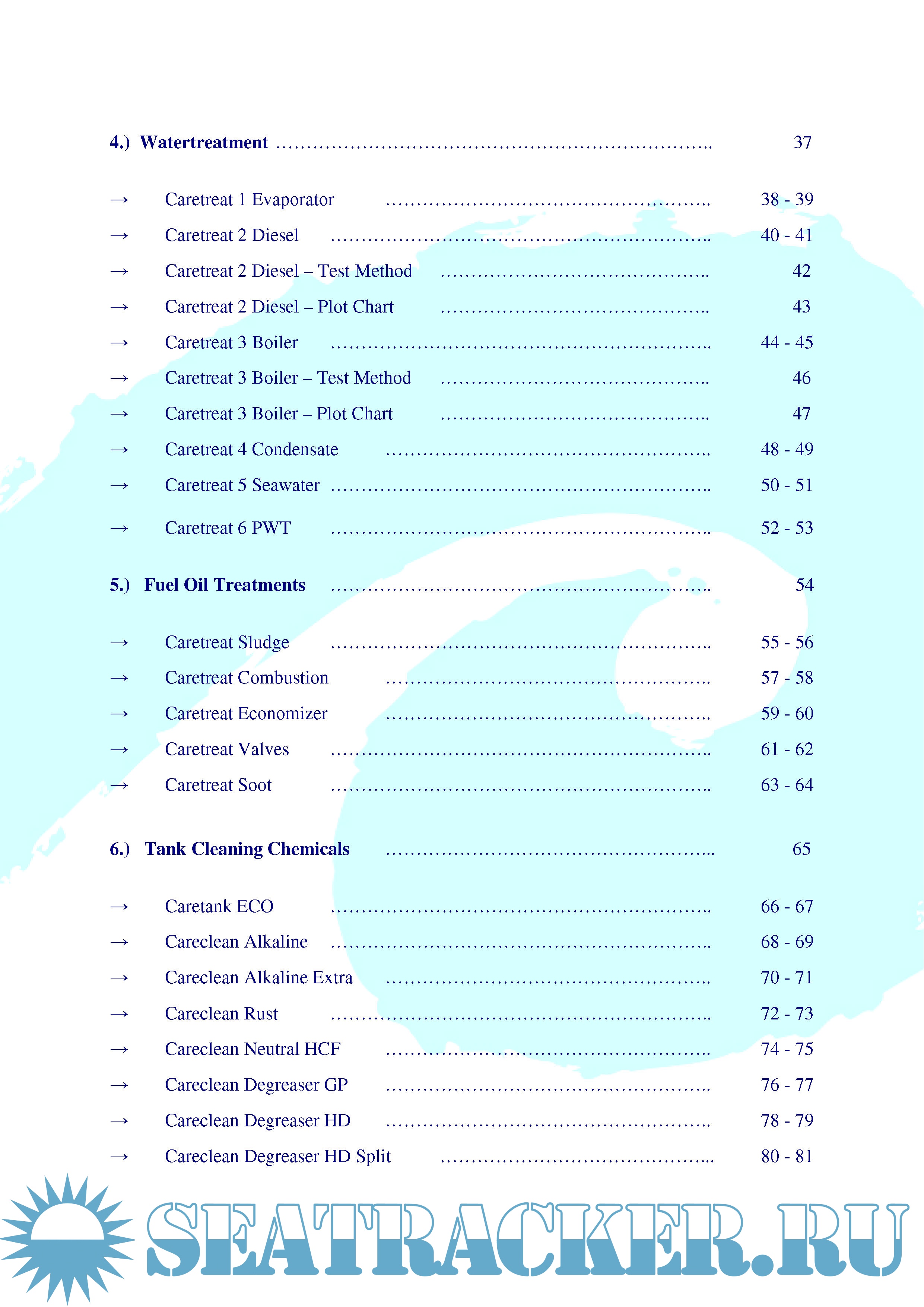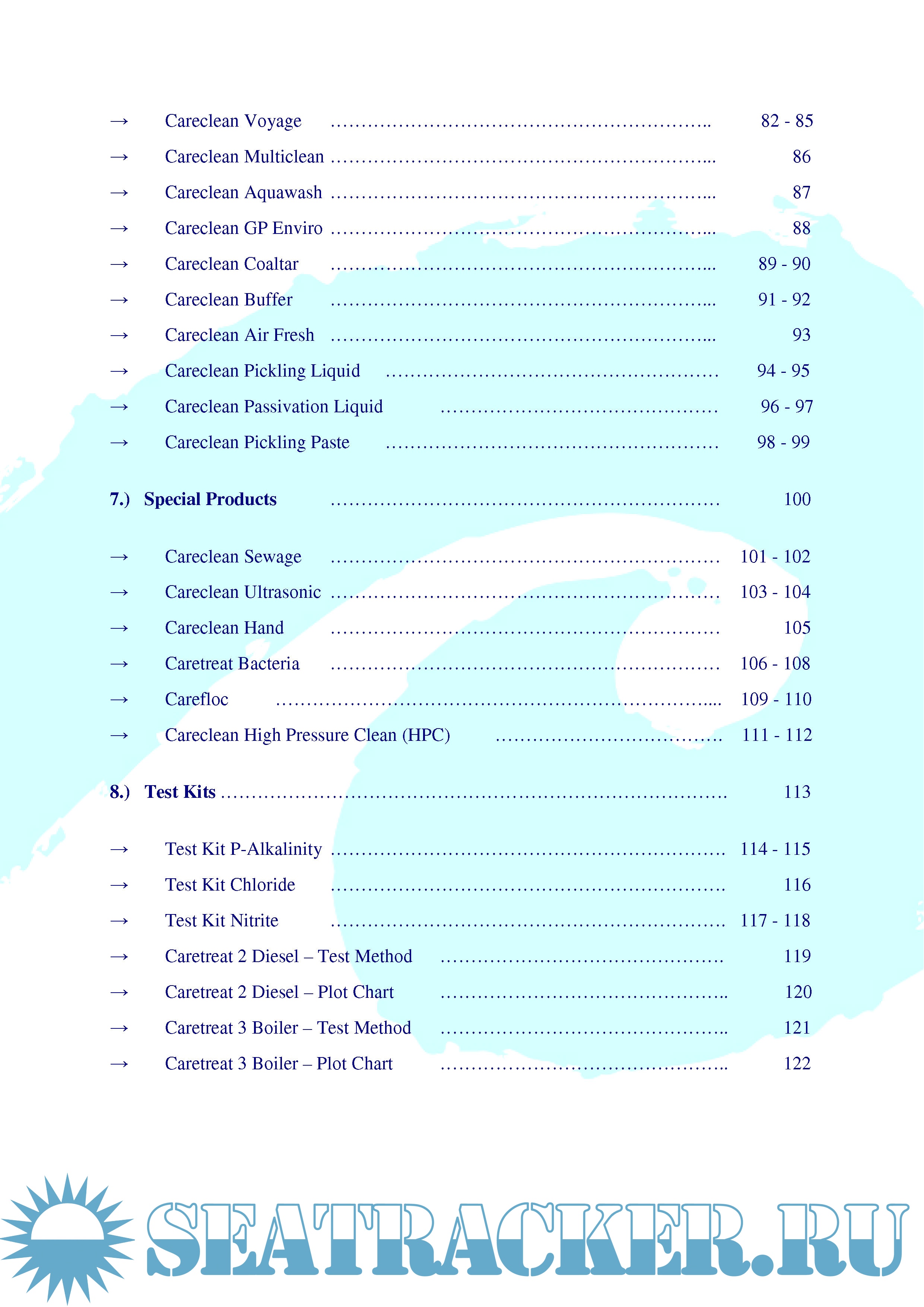 Year: 2006 Language: english Author: Care Clean Genre: Presentation Format: PDF Quality: eBook Description: Marine care chemicals data sheet and catalogue. Additional info: Contains data sheets fot marine chemicals used on ships.