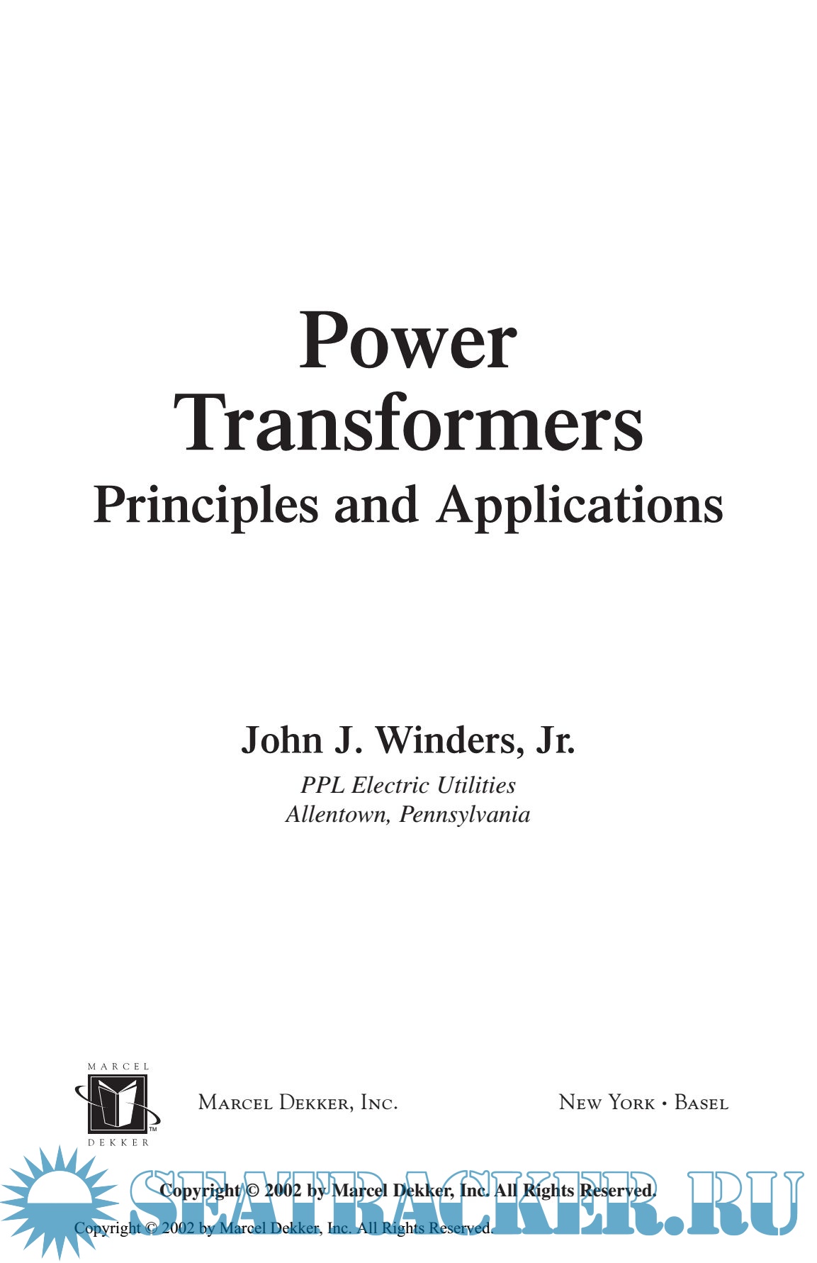 Year: 2002 Language: english Author: J.Winders Genre: Technical book Publisher: Marcel Dekker Ink ISBN: 0-8247-0766-4 Format: PDF Quality: eBook Pages count: 288 Description: There are many kinds of transformers, and all share the same set of fundamental operating principles. Since this book focuses on power transformers, it is fair to ask, ‘‘What exactly is a power transformer?’’ By definition, a power transformer is a transformer which transfers electric energy in any part of the circuit between the generator and the distribution primary circuits. This definition of power transformer in the IEEE standard appears under the heading of ‘‘Size’’ and does not indicate how the transformer is used in the power system. Thus, this book uses this definition in the broadest sense to include discussions of specialty applications such as step voltage regulators, phase sifters, and grounding transformers, as well as the usual step-up and step-down applications. Since the line between power transformers and distribution transformers is somewhat blurry, many of the basic principles presented can be applied to distribution transformers as well.
