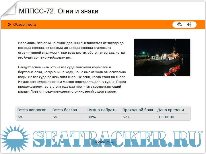 Следует вспомнить, что не все суда включают кормовой и бортовые огни, когда они на ходу, но не имеют хода относительно воды. Не все суда показывают якорные огни, когда стоят на якоре. Не для всех судов по огням можно определить длину судна. Перед прохождением теста стоит еще раз прочитать соответствующий раздел Правил предупреждения столкновений судов в море.