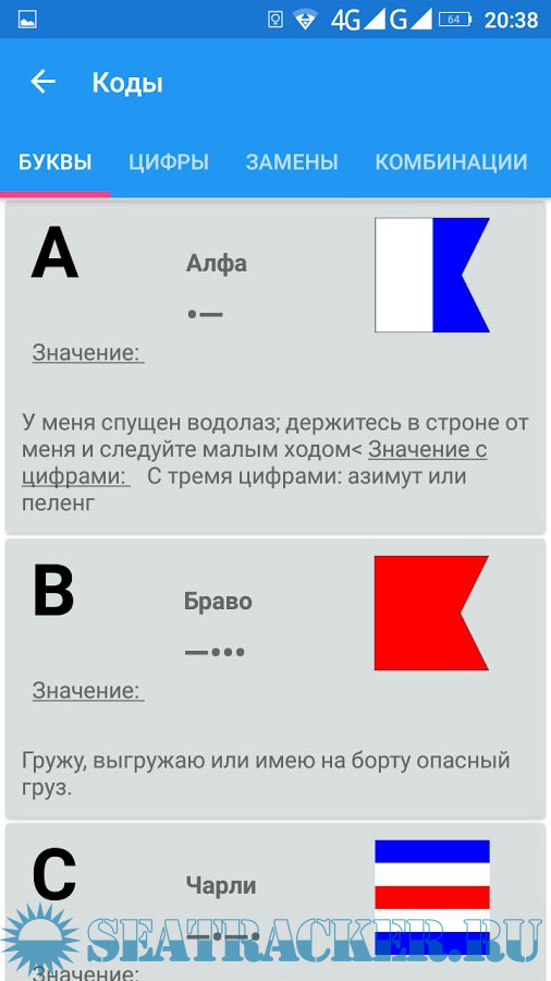 Год выпуска: 2016 Версия: 1.0.26 Разработчик: putevodka Платформа: Android Совместимость с 64-битными ОС: нет Системные требования: Android 4.0 или более поздняя Язык интерфейса: русский Таблэтка: Не требуется Описание: СПРАВОЧНИК ШКИПЕРА (SKIPPER DIRECTORY) содержит информацию, полезную для шкипера/штурмана малого флота. Автор справочника - капитан-инструктор парусно-моторного спорта Константин Лакин ("Маринс" - РФ, "Trans-Ocean" - Германия, "IYT" - Канада/США, "RYA" - Британия), имеющий опыт плавания в Черном и Средиземном морях, Тихом и Индийском океанах. Справочник содержит данные нормативных документов, переработанные и структурированные на базе преподавания морских дисциплин. Результат: лёгкость поиска, наглядный и быстрозапоминаемый вид информации. Первая версия СПРАВОЧНИКА ШКИПЕРА (SKIPPER DIRECTORY) содержит: - Флаги МСС, их соответствие латинскому алфавиту, коду Герке (Морзе), транскрипцию произношения, значение буквенных и цифровых флагов, значение основных комбинаций. Информация соответствует стандарту МСС-1969 (ICS-1969), включая корректуру по состоянию на 2015 год. - Звуковые сигналы в условиях прямой и ограниченной видимости. Информация соответствует стандарту МППСС-72 (COLREGS-72), включая корректуру по состоянию на 2015 год. - Шкалу Бофорта европейского 12-балльного стандарта ВМО ООН (OMM/WMO). - Шкалу морского волнения 9-балльного стандарта ВМО ООН (OMM/WMO) - адаптированную шкалу Дугласа. - Классификацию тропических циклонов, терминологию и шкалы предупреждений по версиям различных региональных специализированных метеоцентров (RSMC).