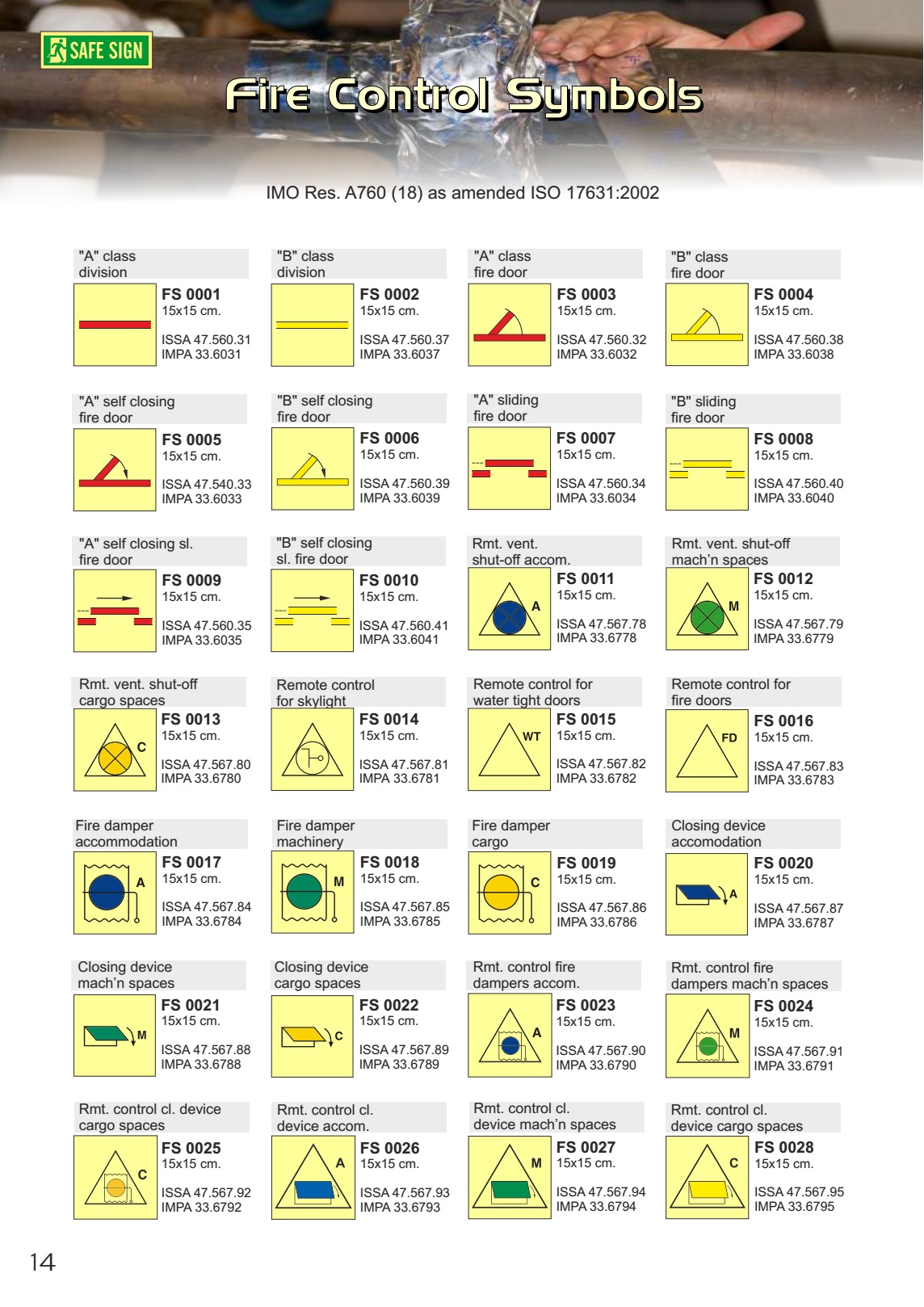Year: 2016 Language: english Author: IMO Genre: Guide Publisher: IMO Format: PDF Quality: eBook Number of pages: 68 Description: Due to changing regulation the design of Rescue & Life saving Signs have changed lately. Safe Sign tried to implement almost all changes in this catalogue so that our clients once they purchase know the latest standards. The old design standards will still be available in limited quanties during coming 5 years. Therefore our old 2014/2015 catalogue will still be available as a download on the SafeSign website. The main changes are in the fire protection signs and there combinations see below.