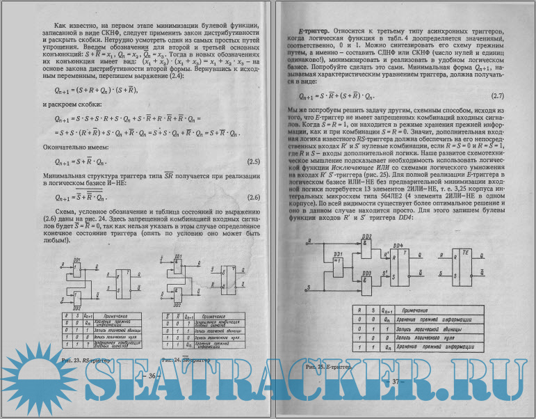 Логические функции Основные законы алгебры логики Реализация логических функций в базисах И—НЕ, ИЛИ—НЕ Понятие о синтезе простейших схем комбинационной логики Практический анализ схем комбинационной логики Асинхронные и синхронные RS-триггеры и D-триггеры Двухтактные триггеры структуры "ведущий—ведомый" (MS) Универсальные JK-триггеры структуры MS Функциональные устройства судовой автоматики на универсальных логических элементах и триггерах Формирователи коротких импульсов и задержек Генераторы прямоугольных импульсов Простейшие примеры практического использования триггеров Основные цифровые узлы электронных систем судовой автоматики Дешифраторы и шифраторы Мультиплексоры и демультиплексоры Регистры Счетчики Программируемые логические матрицы Полупроводниковые запоминающие устройства Основные схемотехники логических интегральных микросхем. Вопросы эксплуатации Интегральные микросхемы — качественно новые полупроводниковые приборы Диодно-транзисторная логика Транзисторно-транзисторная логика Логика на комплементарных МДП-транзисторах Специальные логические элементы Параметры и сравнительная характеристика логических интегральных микросхем Особенности разработки и эксплуатации логических устройств на интегральных микросхемах