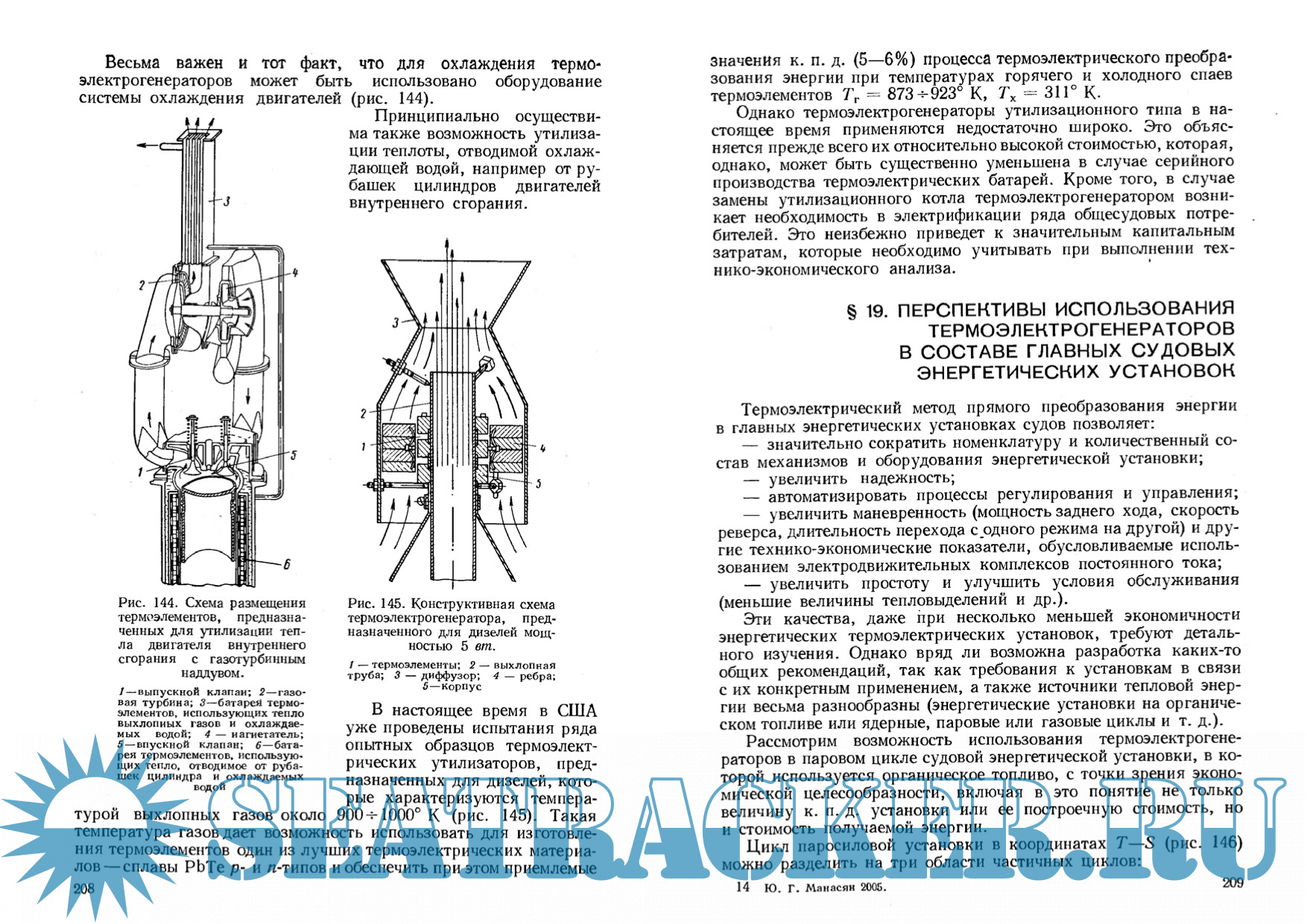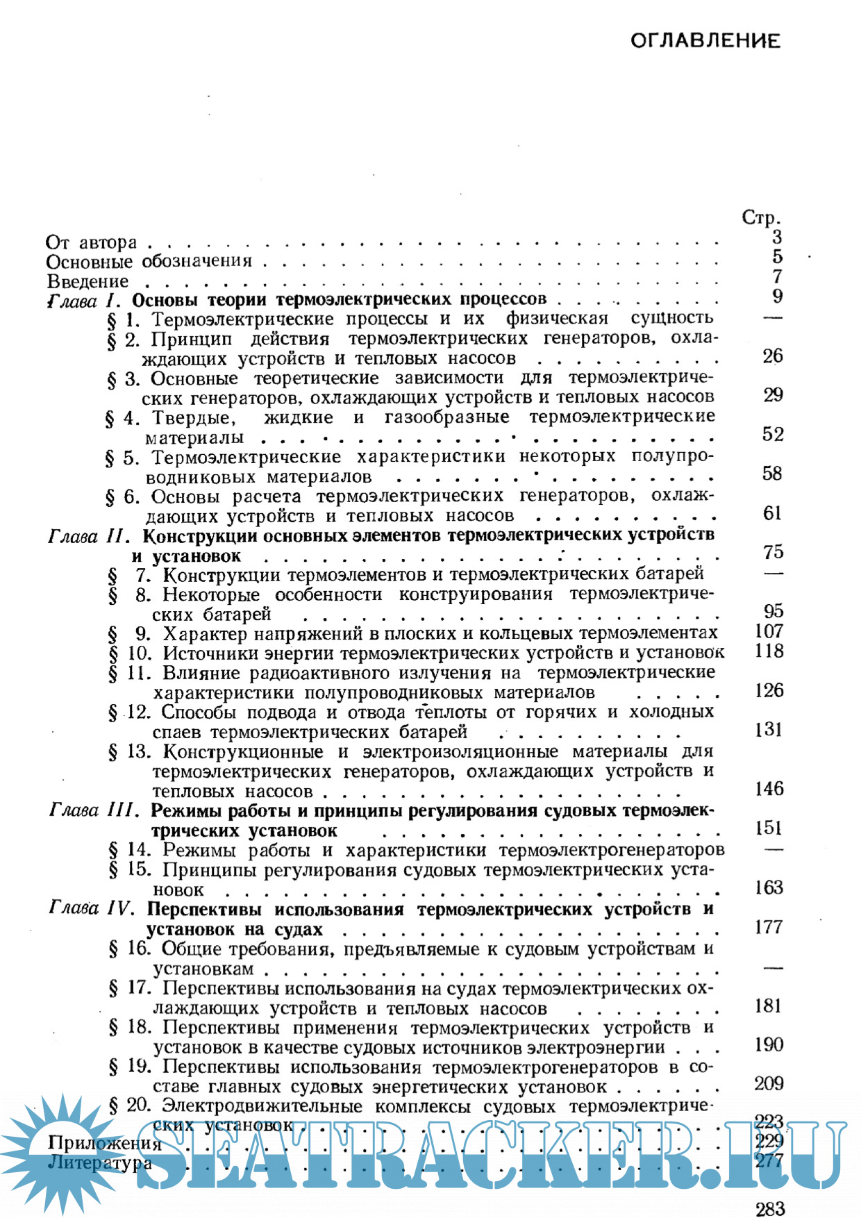 Большое внимание уделено анализу конструктивных особенностей элементов термоэлектрических устройств и установок различного назначения и мощности, перспективам применения термоэлектрического метода преобразования энергии в судовой энергетике.