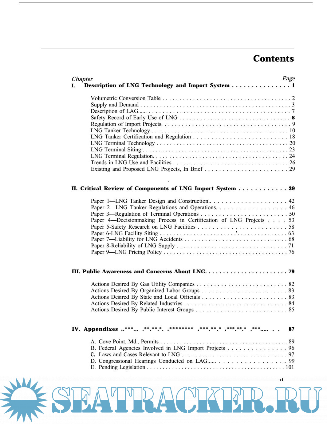 This book is divided into three parts:Chapter I presents a factual description of the LNG systems and facilities and the Federal regulatory process governing the development and operation of such systems. Chapter II presents a critical review of key portions of the LNG system where technological or political problems may occur. Chapter III outlines the kinds of actions desired by interested parties.