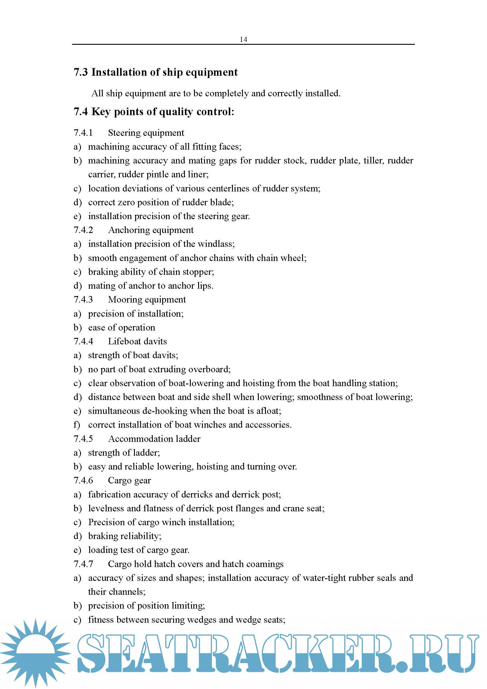 7.3 Installation of ship equipment……………………………………………………14