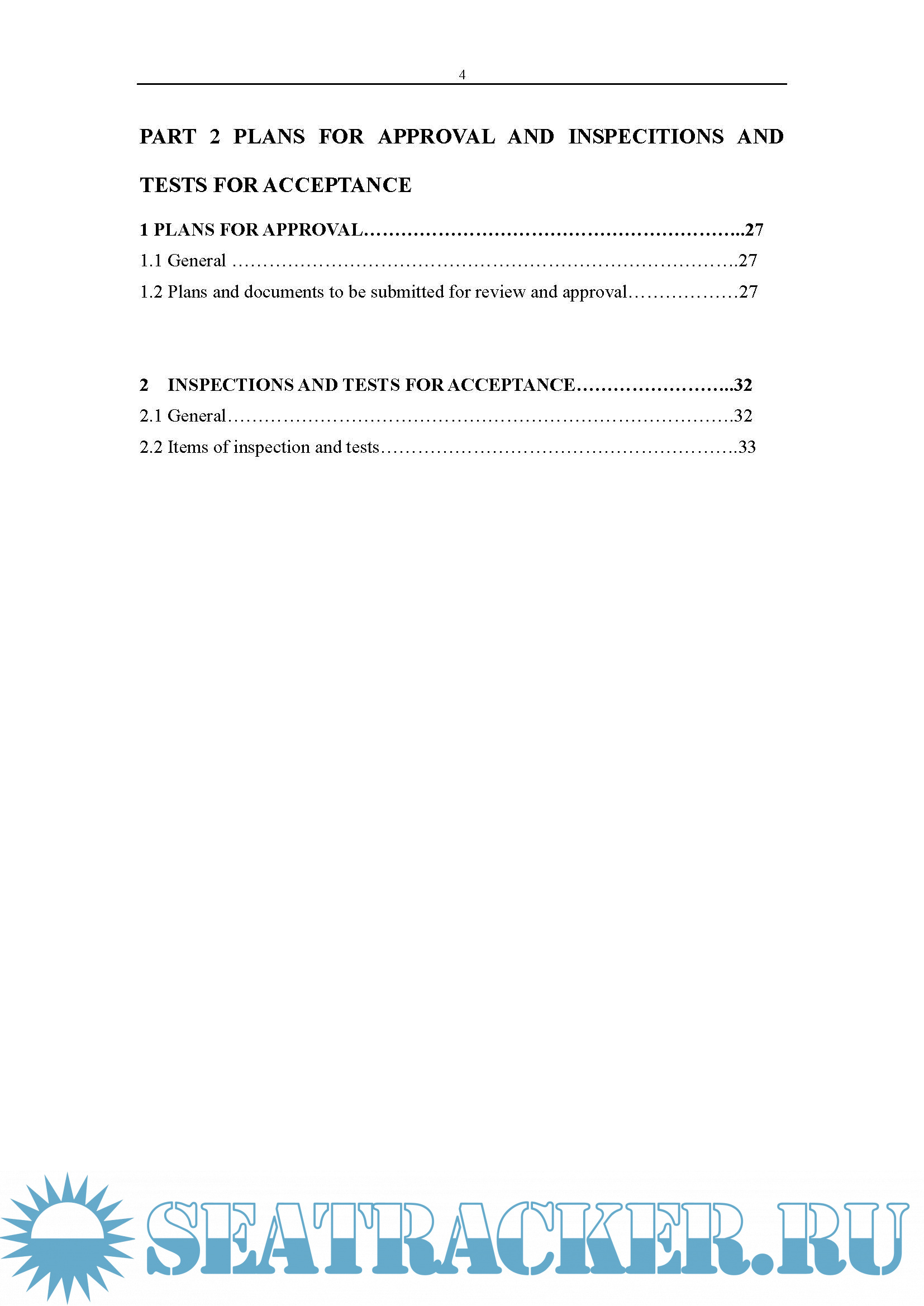 PART 2 PLANS FOR APPROVAL AND INSPECITIONS AND TESTS FOR ACCEPTANCE