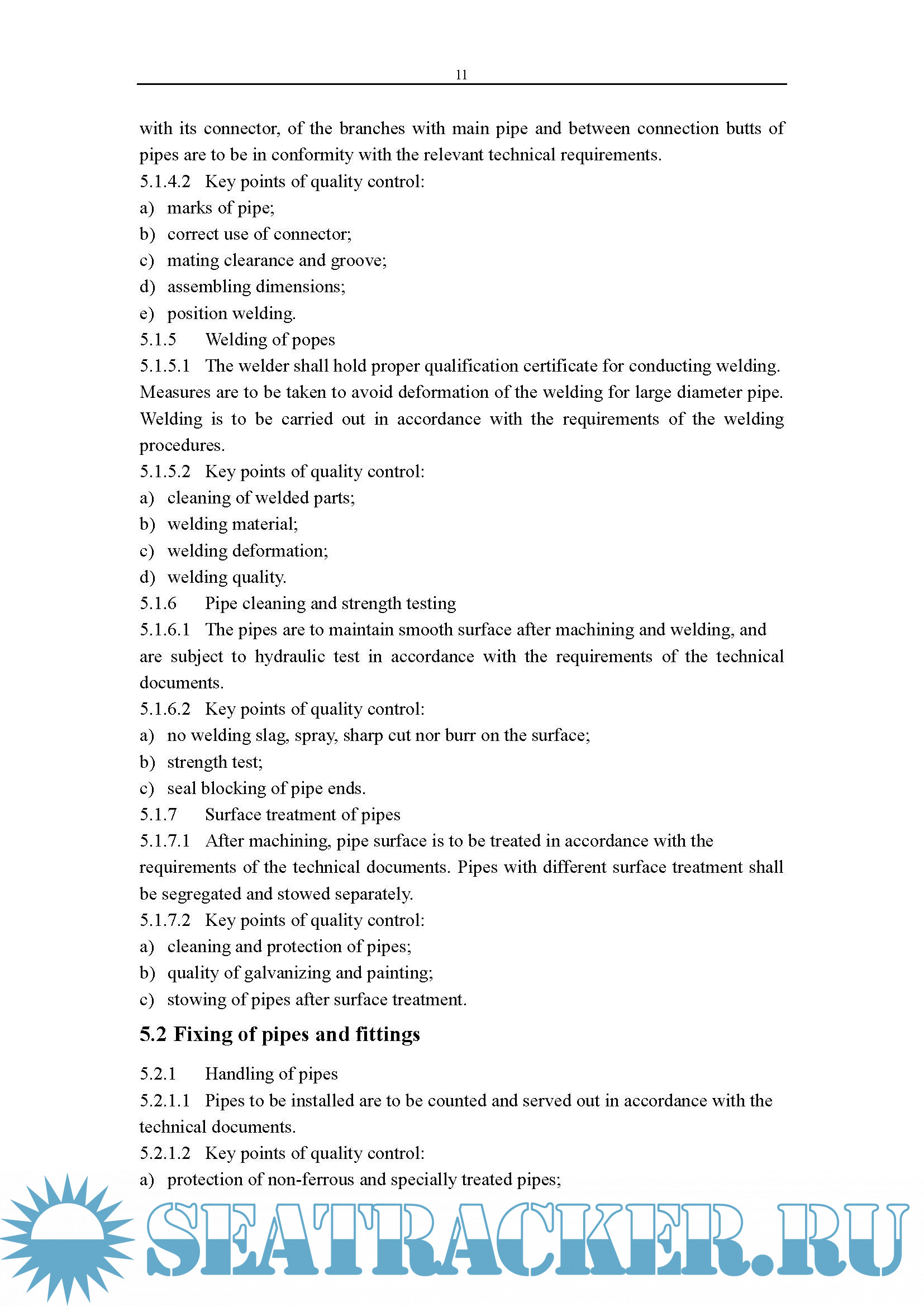 5.2 Fixing of pipes and fittings…………………………………………………… .11