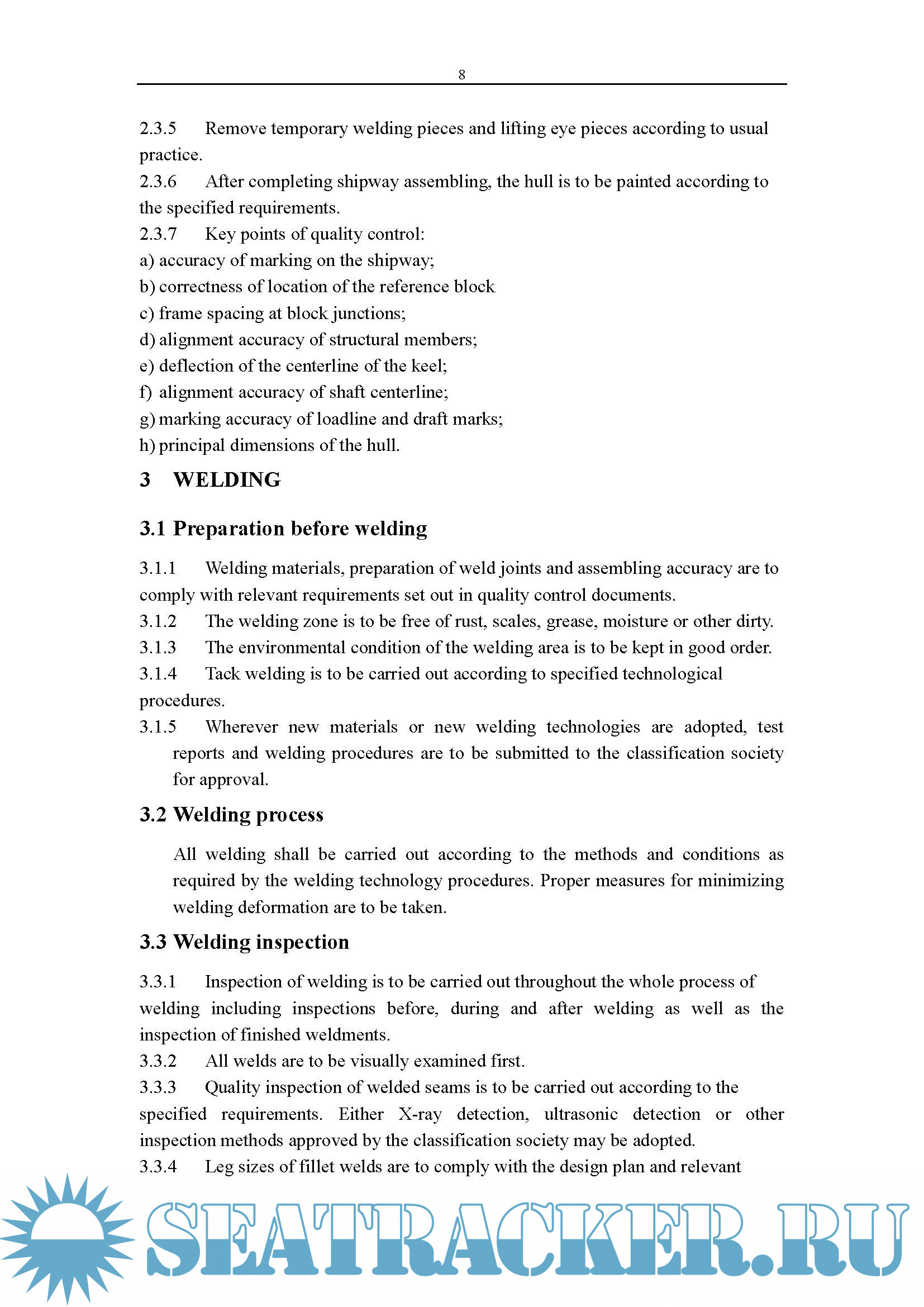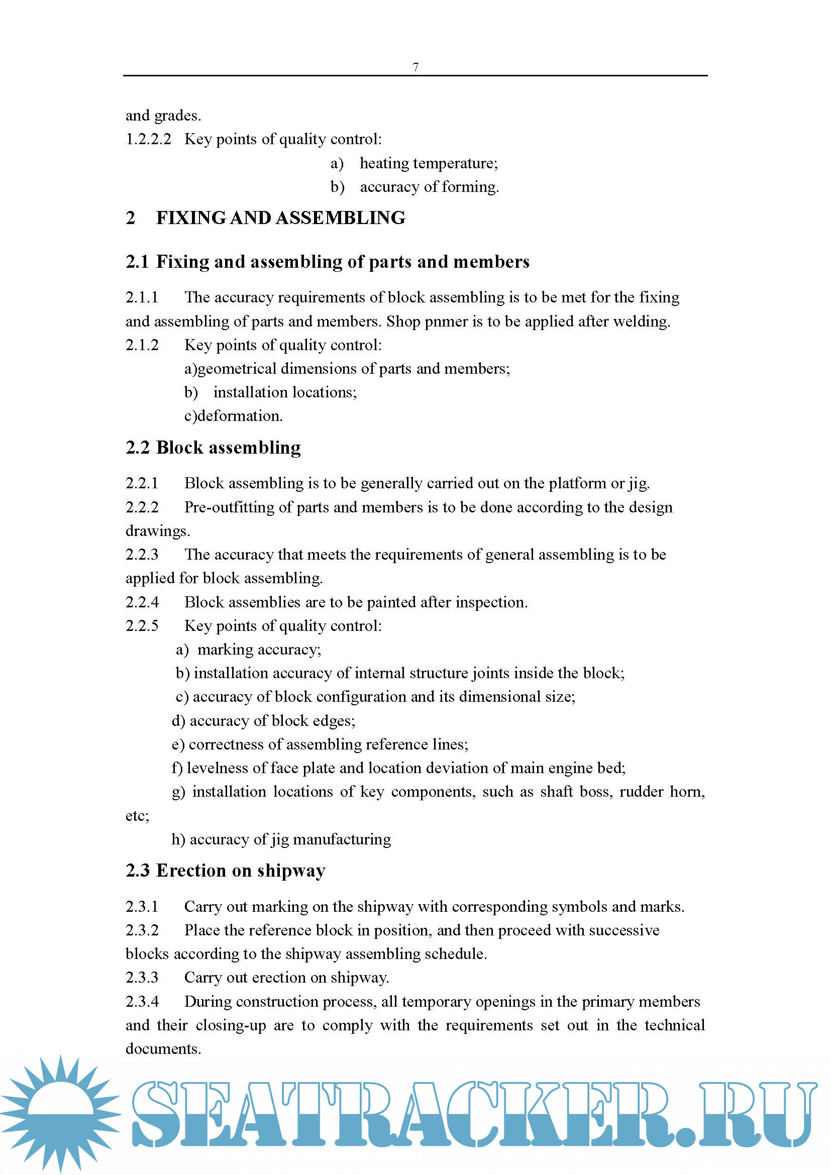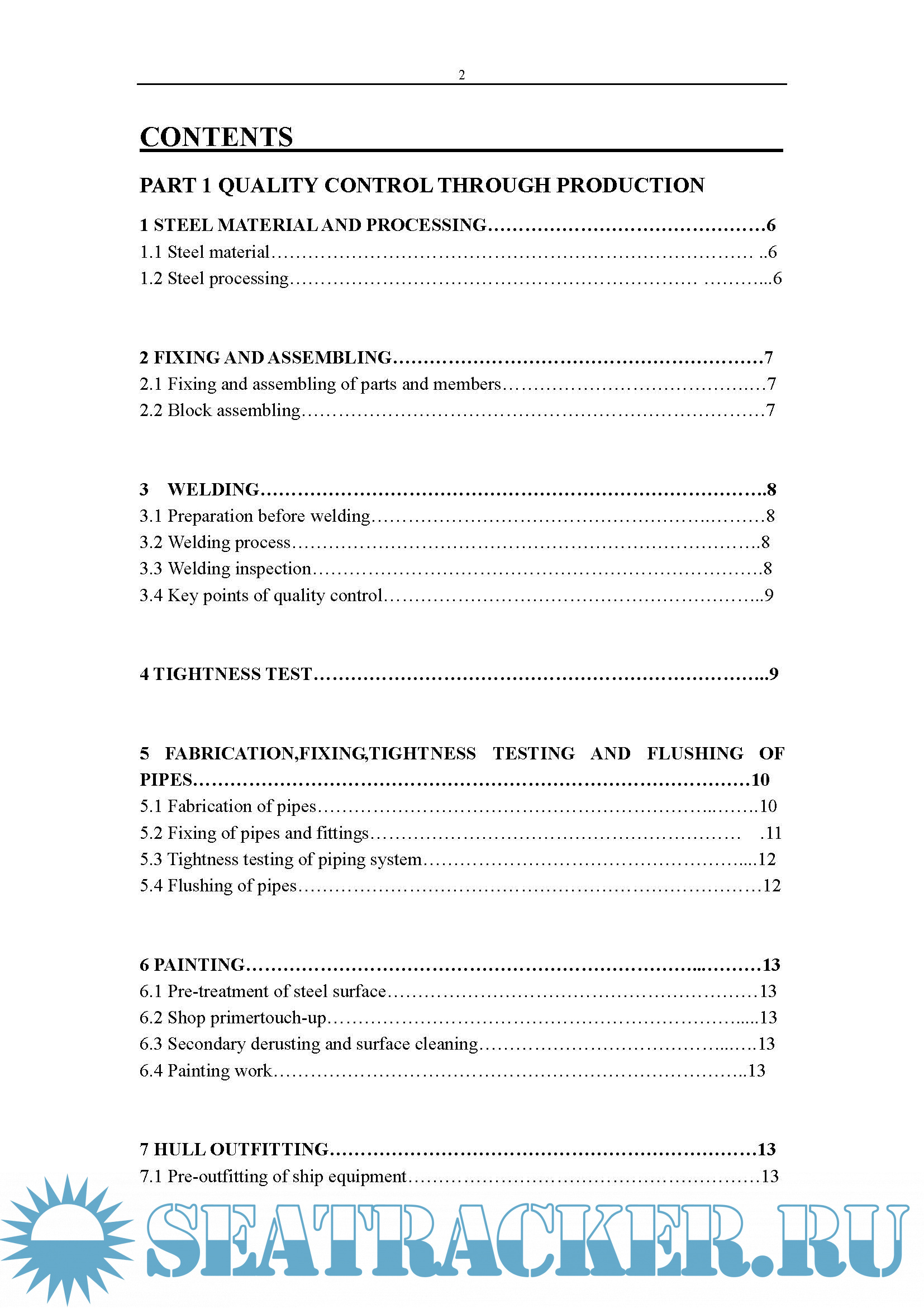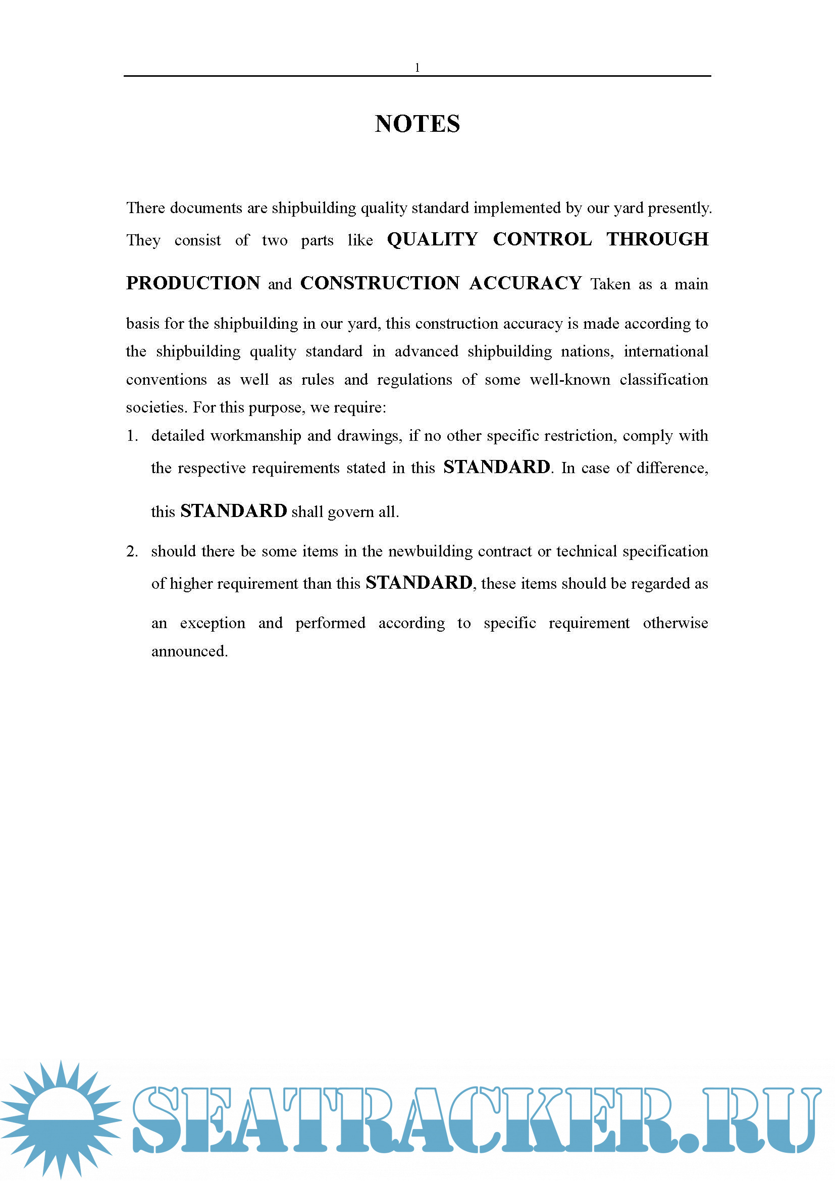 There documents are shipbuilding quality standard implemented by our yard presently. They consist of two parts like QUALITY CONTROL THROUGH PRODUCTION and CONSTRUCTION ACCURACY Taken as a main basis for the shipbuilding in our yard, this construction accuracy is made according to the shipbuilding quality standard in advanced shipbuilding nations, international conventions as well as rules and regulations of some well-known classification societies. For this purpose, we require: