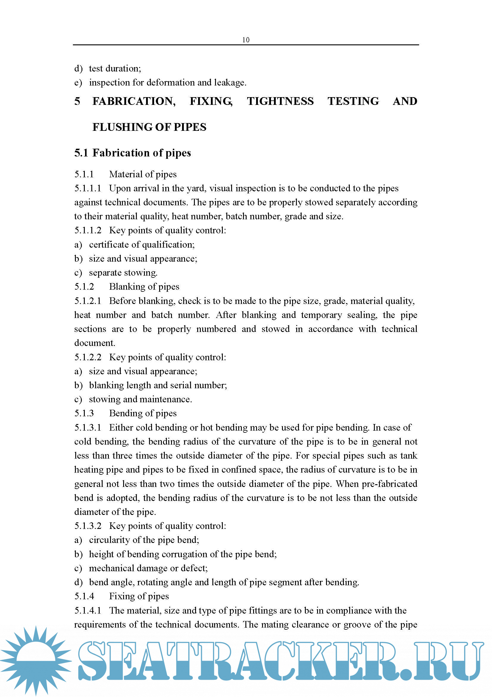 5 FABRICATION,FIXING,TIGHTNESS TESTING AND FLUSHING OF PIPES………………………………………………………………………………10