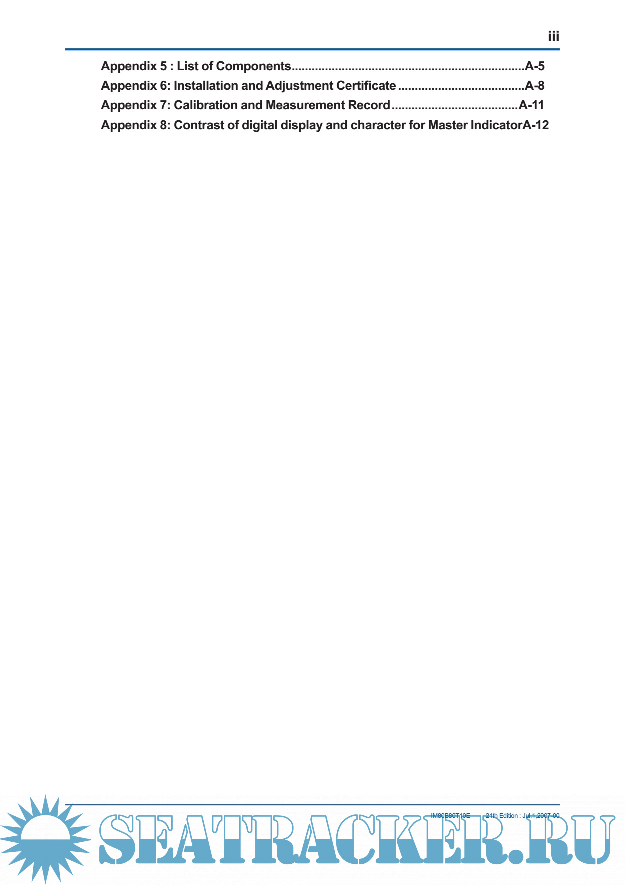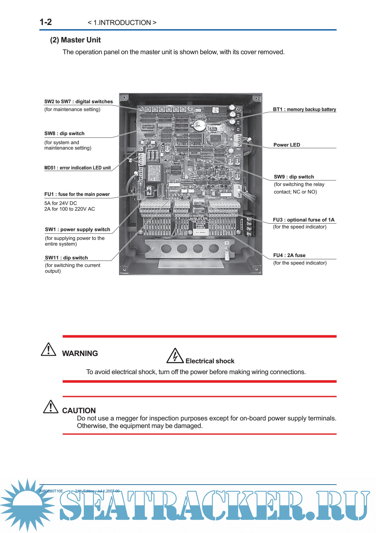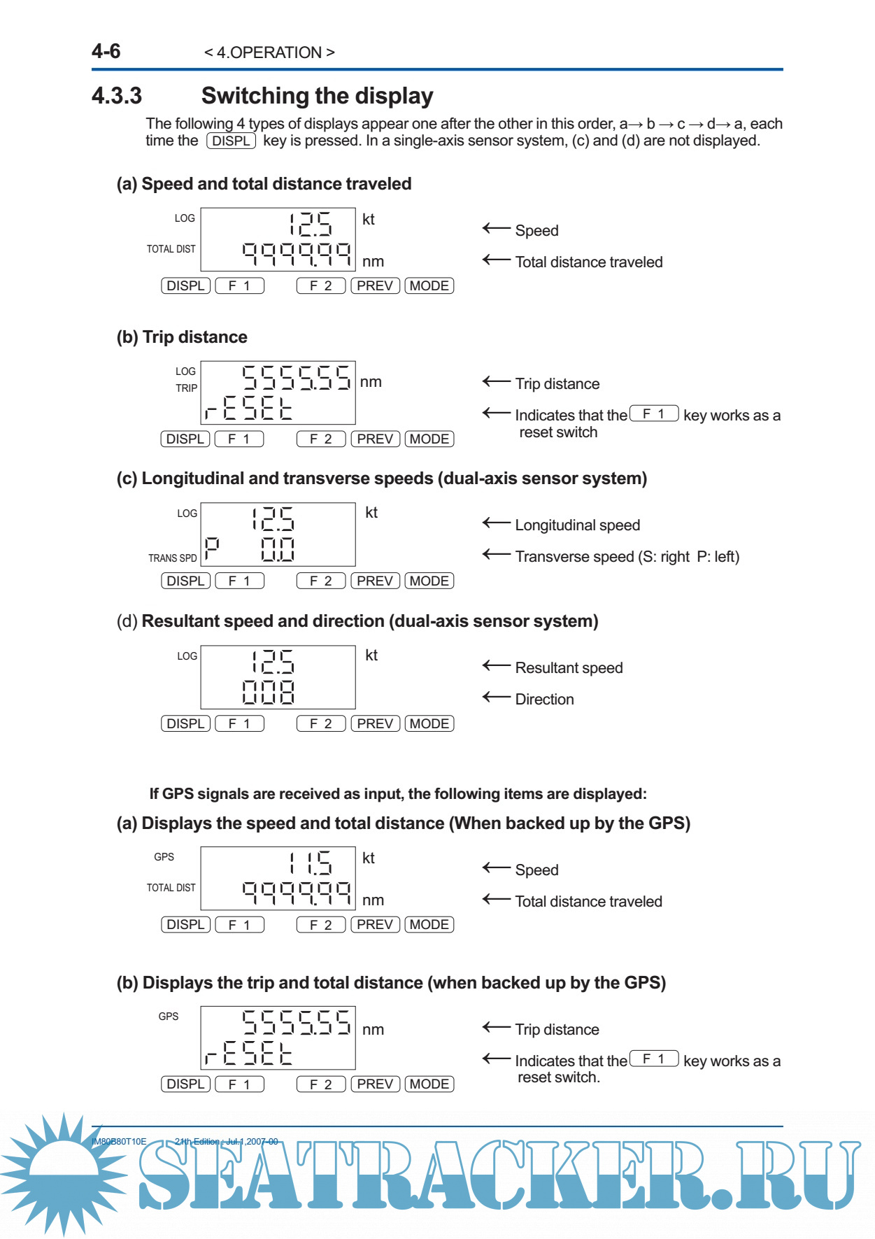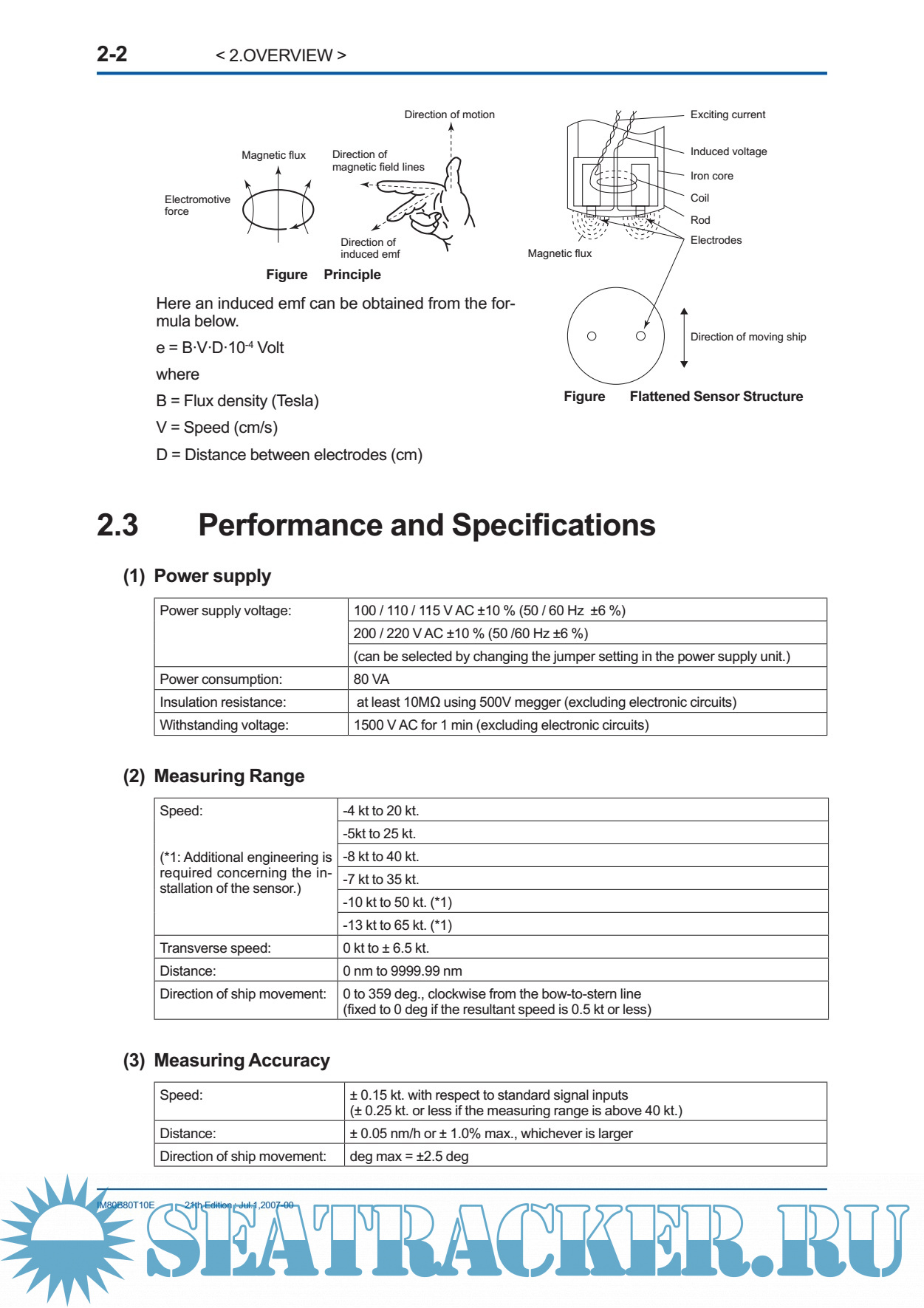 Year: 2007 Language: english Author: JRC Genre: Manual Publisher: JRC Edition: 21 Format: PDF Quality: eBook Pages count: 85 Description: The EML 500 series of electromagnetic logs successfully meets the performance requirements prescribed by IMO resolution A478 (XII), and has been approved by the Ministry of Land,Infrastructure and Transport Japan (approval no.:3795). The EML500 features: (1) Versatile external interfaces · Pulse output (photocoupler / contact) · Digital output (NMEA0183) · Analog speed output (0V DC to 5V DC) · Alarm contact and interface with the GPS (2) High reliability The use of highly integrated circuits, such as microprocessors, provides excellent reliability due to a reduction in parts and the elimination of moving parts. (3) Master indicator for displaying the speed and distance (4) Variety of sensors available to meet various installation requirements. A dual-axis sensor can measure not only the longitudinal speed, but also the transverse speed. (5) Built-in self-diagnostic function