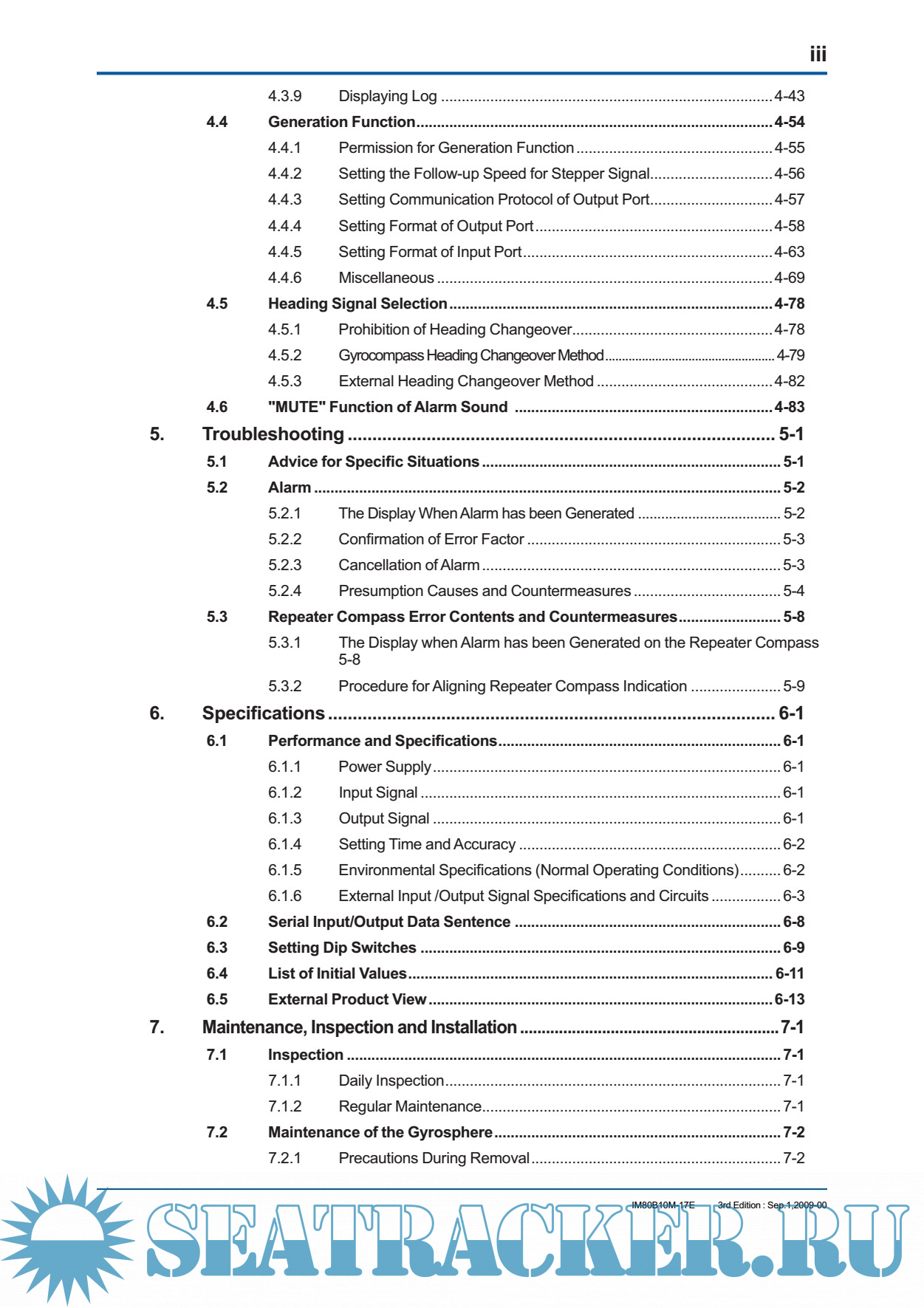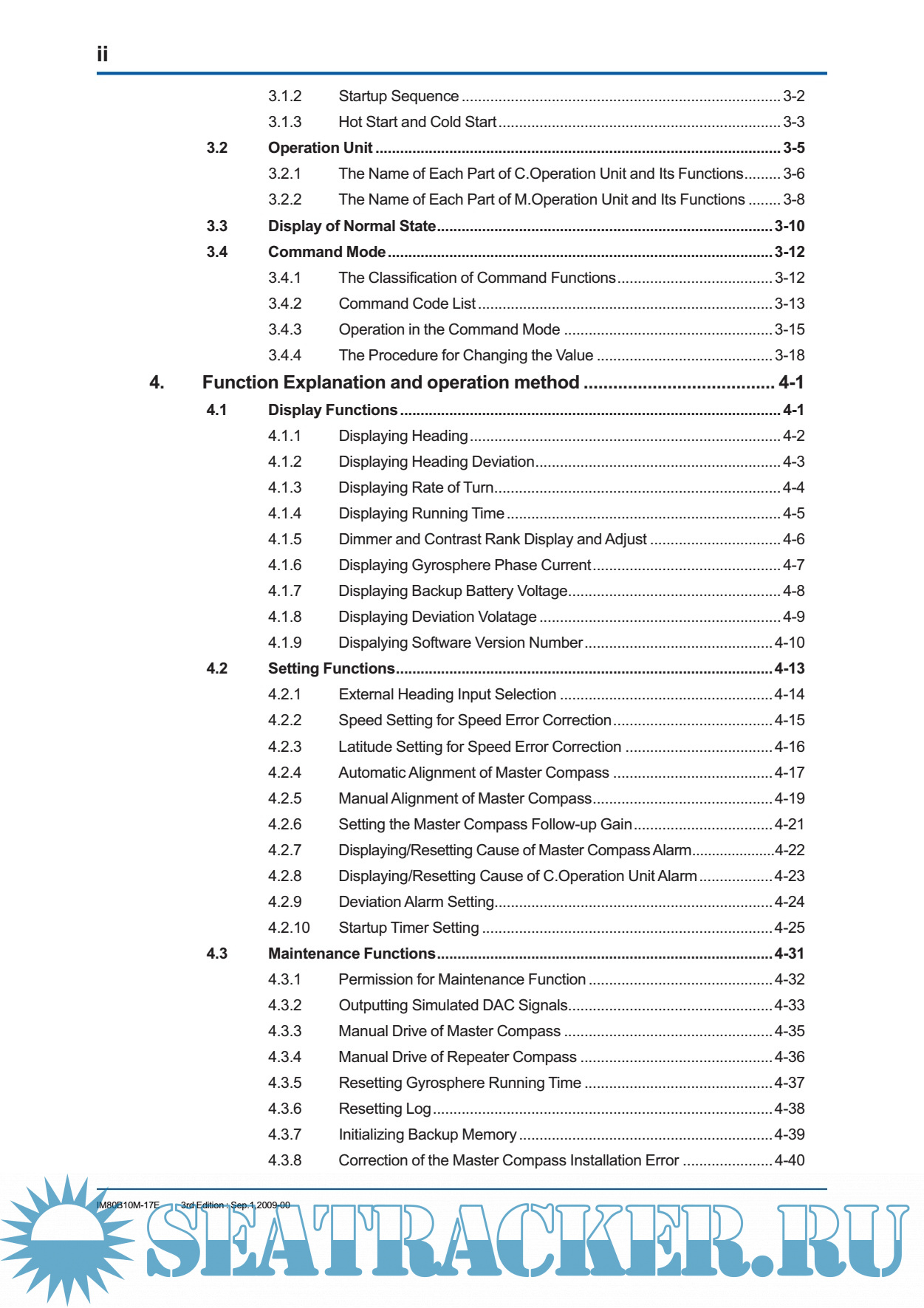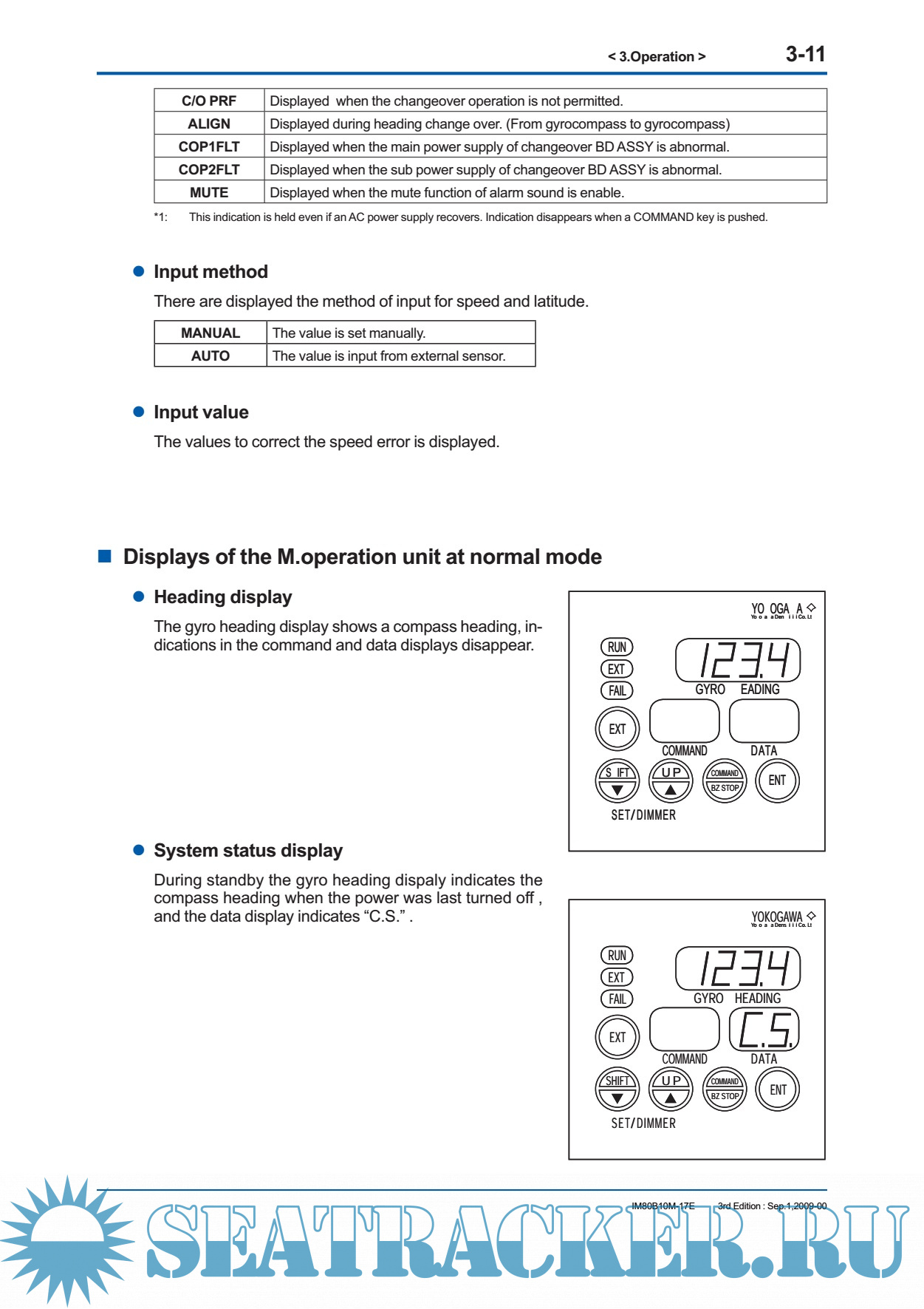 Year: 2009 Language: english Author: JRC Genre: Manual Publisher: JRC Edition: 3 Format: PDF Quality: eBook Pages count: 230 Description: The CMZ900 Gyrocompass fully conforms to the technical requirements of the IMO resolution A.424 (XI), gyrocompass performance standards, as well as to JIS F9602, Class A standards. The anti-vibration structure has been strengthened and improvement of the follow-up performance has been achieved, leading to increased rigidity of the gyrocompass in all types of ships, from small to large.
