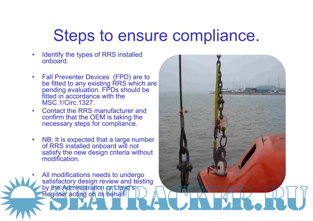 At the 89th session of the Maritime Safety Committee (MSC 89) in May 2011, the IMO adopted amendments to SOLAS Chapter III and the LSA Code, as well as related Guidelines for the Evaluation of Existing On-load Release and Retrieval Systems (OLRRS).