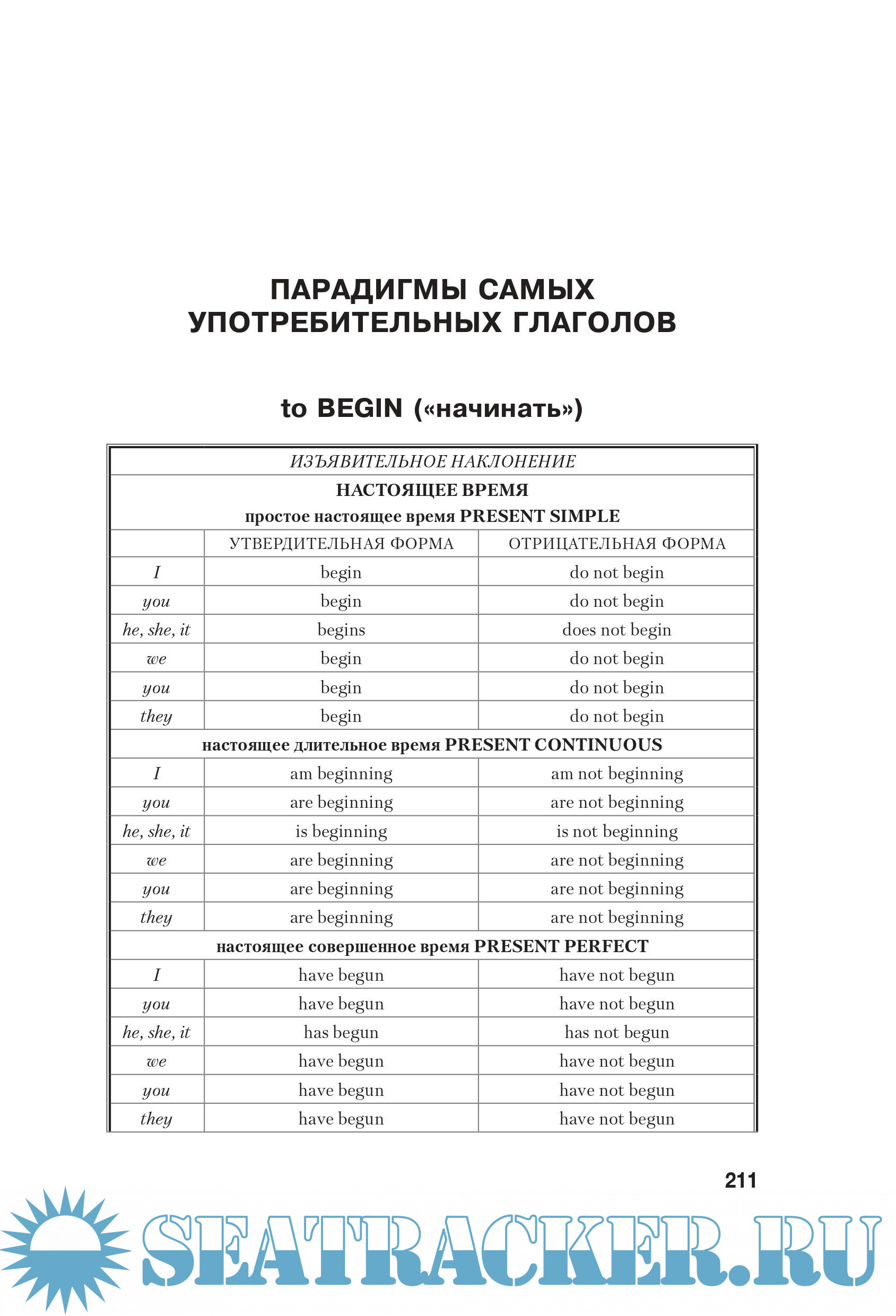 Часть III. Парадигмы самых употребительных глаголов 209
