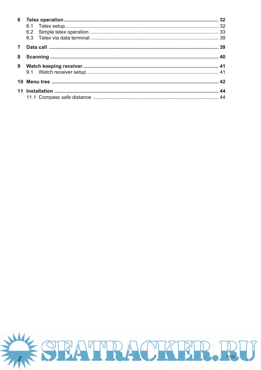 Year: 2010 Language: english Author: Thrane & Thrane A/S Genre: Manual Publisher: Thrane & Thrane A/S Format: PDF Quality: eBook Pages count: 56 Description: SAILOR CU5100 MF/HF maritime radio telephone with built-in DSC (Digital Selective Calling) system, fulfilling the highest international standards for marine MF/HF communication and safety procedures. The transceiver is born with a 2187,5kHz DSC watch receiver forming an ideal system for MF GMDSS installations.The transceiver can easily be upgraded for 6 channel scanning DSC watch receiver and Telex operation to comply with MF/HF requirements in sea area A3. If connected to a GPS or other maritime navigation system it can automatically include the true UTC time and your position in its DSC distress messages.