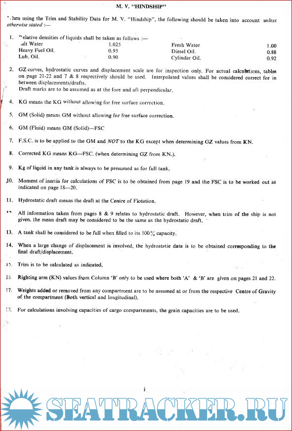 Trim and Stability Particualrs of M.V. Hindship