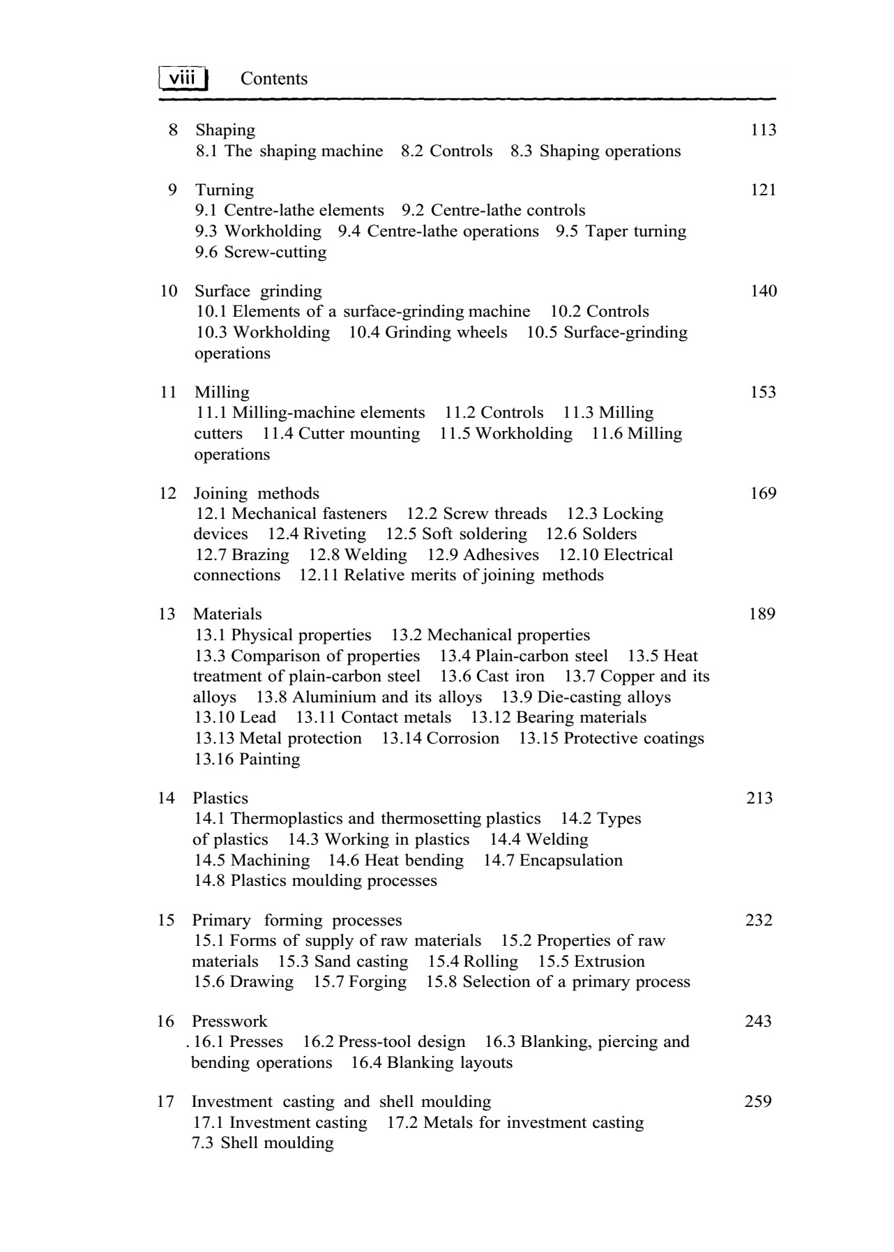 Year: 2002 Language: english Author: Bruce J Black Genre: Technical book Format: PDF Quality: Scanned pages + text layer Pages count: 294 Description: Preparing the second edition has enabled me to update a number of areas and to increase the scope of the book by including additional material. It has also afforded the opportunity of resetting to current popular book size and format. In this second edition I have increased the content to cover a wider range of topics in order to make the book even more comprehensive by providing additional chapters on processes to include sand casting, rolling, extrusion, drawing, forging, presswork, investment casting, shell moulding and die casting. I have updated the Safe Practices chapter to include current Health and Safety Regulations and the chapter on Measuring Equipment to include electronic instruments. A section on bonded abrasive grinding wheels has been added to the chapter on Surface Grinding and moulding processes has been included in the chapter on Plastics.