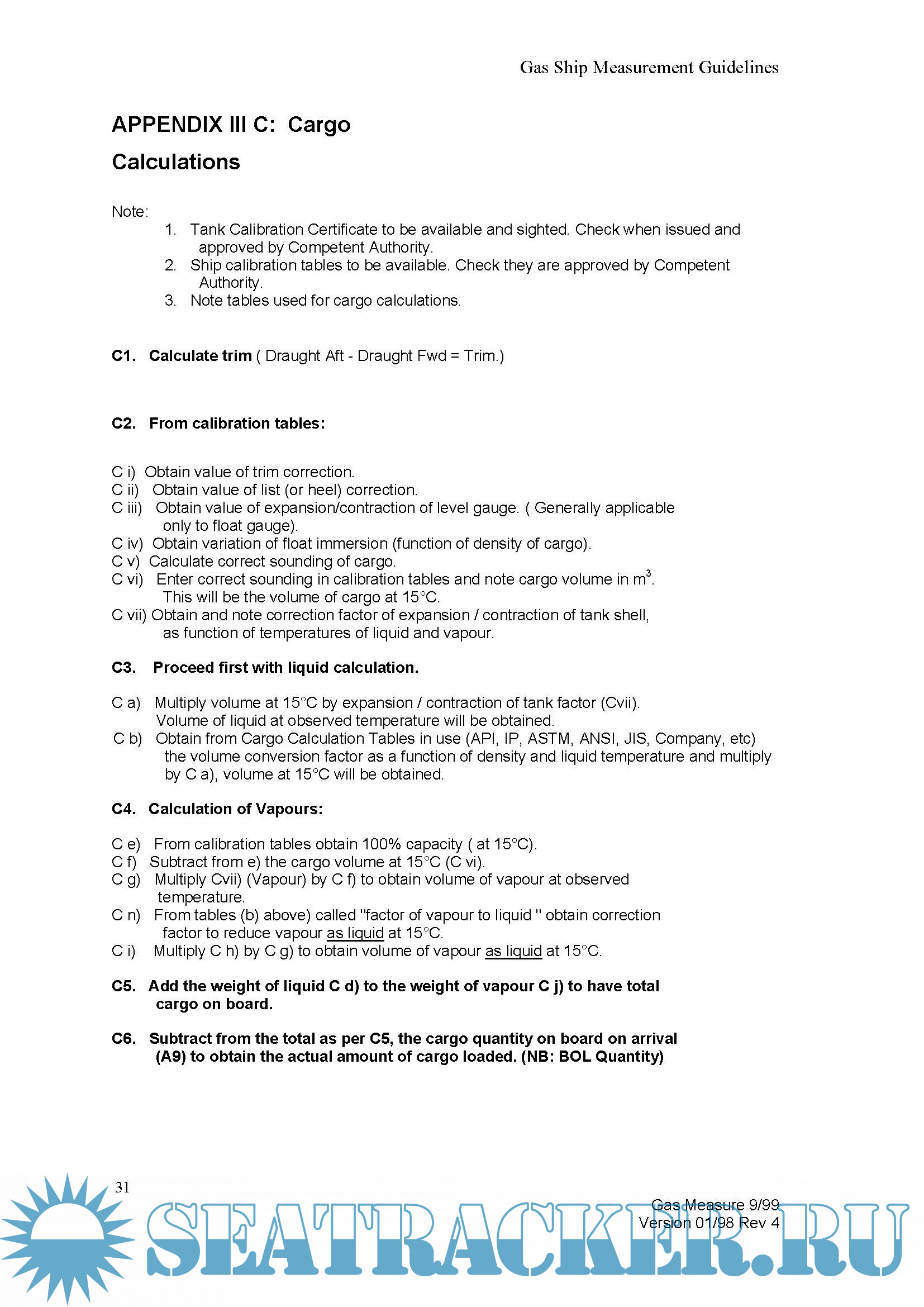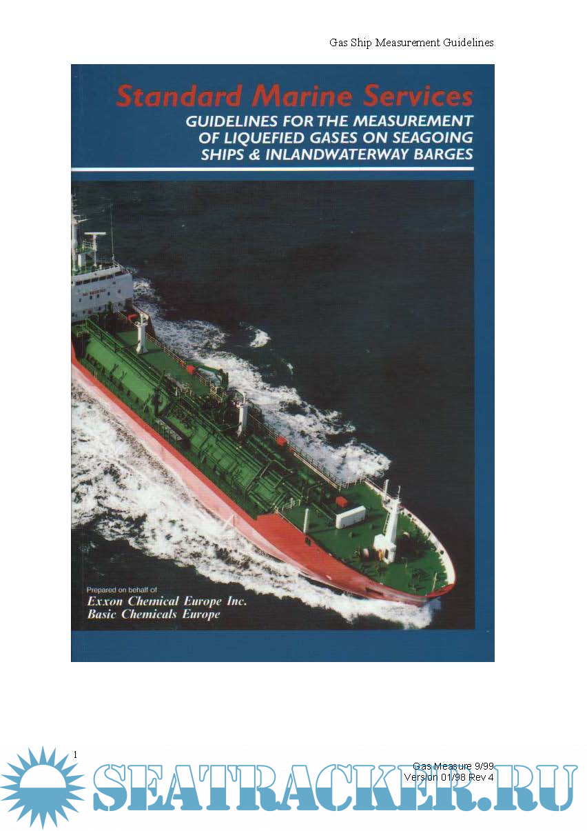 Year: 1999 Language: english Author: SMS Genre: Guide Format: PDF Quality: eBook Pages count: 39 Description: These guidelines were developed in 1998/99 for Exxon Chemical Europe Inc., Basic Chemicals Europe by Captain C. Allport of Standard Marine Services Limited and replace earlier guidance. They are based upon the report and advice from an LPG Measurement Survey conducted by Srini Sivaraman of ER&E in May/June 1997 and incorporate the earlier guidelines for Liquefied Gas Cargo Measurement and Calculation, produced in 1987 for Exxon Chemicals International by the Centre for Advanced Maritime Studies, Edinburgh. The earlier guidelines were adopted by Exxon Chemical International Inc. and approved by Regional Audit in 1988.