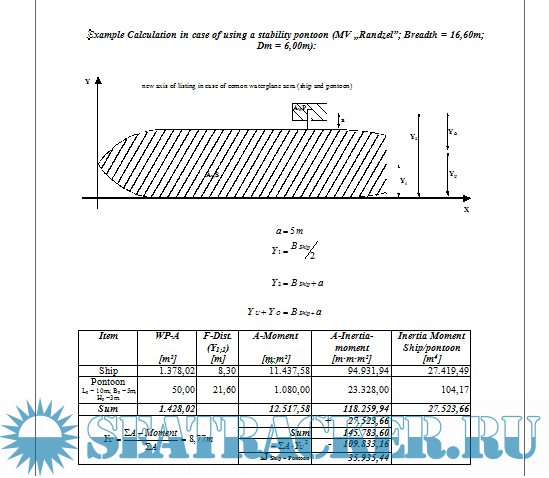 Calculation with a stability pontoon.