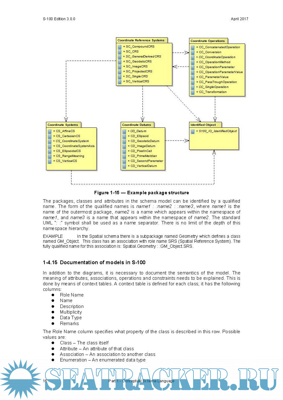 Year: 2017 Language: english Author: IHO Genre: Technical book Format: PDF Quality: eBook Pages count: 580 Description: Development of S-100 – the IHO Universal Hydrographic Data Model was included in the IHO Work Programme in 2001. S-100 has been developed by the IHO Transfer Standards Maintenance and Applications Development (TSMAD) Working Group with active participation from hydrographic offices, industry and academia. Since 2015, S-100 has been further developed by the S100 Working Group (S100WG). S-100 provides a contemporary hydrographic geospatial data standard that can support a wide variety of hydrographic-related digital data sources, and is fully aligned with mainstream international geospatial standards, in particular the ISO 19100 series of geographic standards, thereby enabling the easier integration of hydrographic data and applications into geospatial solutions. The primary goal for S-100 is to support a greater variety of hydrographic-related digital data sources, products, and customers. This includes the use of imagery and gridded data, enhanced metadata specifications, unlimited encoding formats and a more flexible maintenance regime. This enables the development of new applications that go beyond the scope of traditional hydrography - for example, high-density bathymetry, seafloor classification, marine GIS, et cetera. S-100 is designed to be extensible and future requirements such as 3-D, time-varying data (x, y, z, and time) and Web-based services for acquiring, processing, analysing, accessing, and presenting hydrographic data can be easily added when required. The S-100 development and maintenance process is specifically aimed at allowing direct input from non-IHO stakeholders, thereby increasing the likelihood that these potential users will maximise their use of hydrographic data for their particular purposes. S-100 will eventually replace S-57 – the established IHO Transfer Standard for Digital Hydrographic Data.