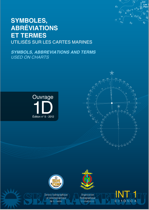 Description: This edition of "Symbols, Abbreviations and Terms used on charts" is based upon the "Chart specifications of the IHO" which came into force at the XII-th International Hydrographic Conference 1982 in Monaco. 1D also shows number INT 1, as being the official publications of the IHO in French language on this topic.