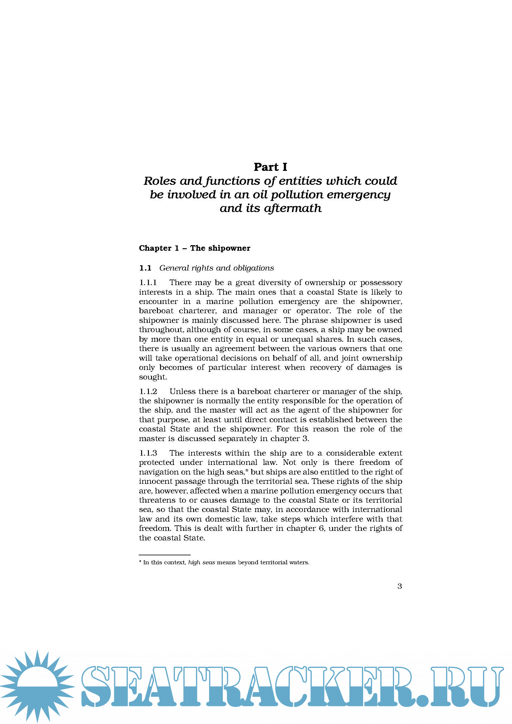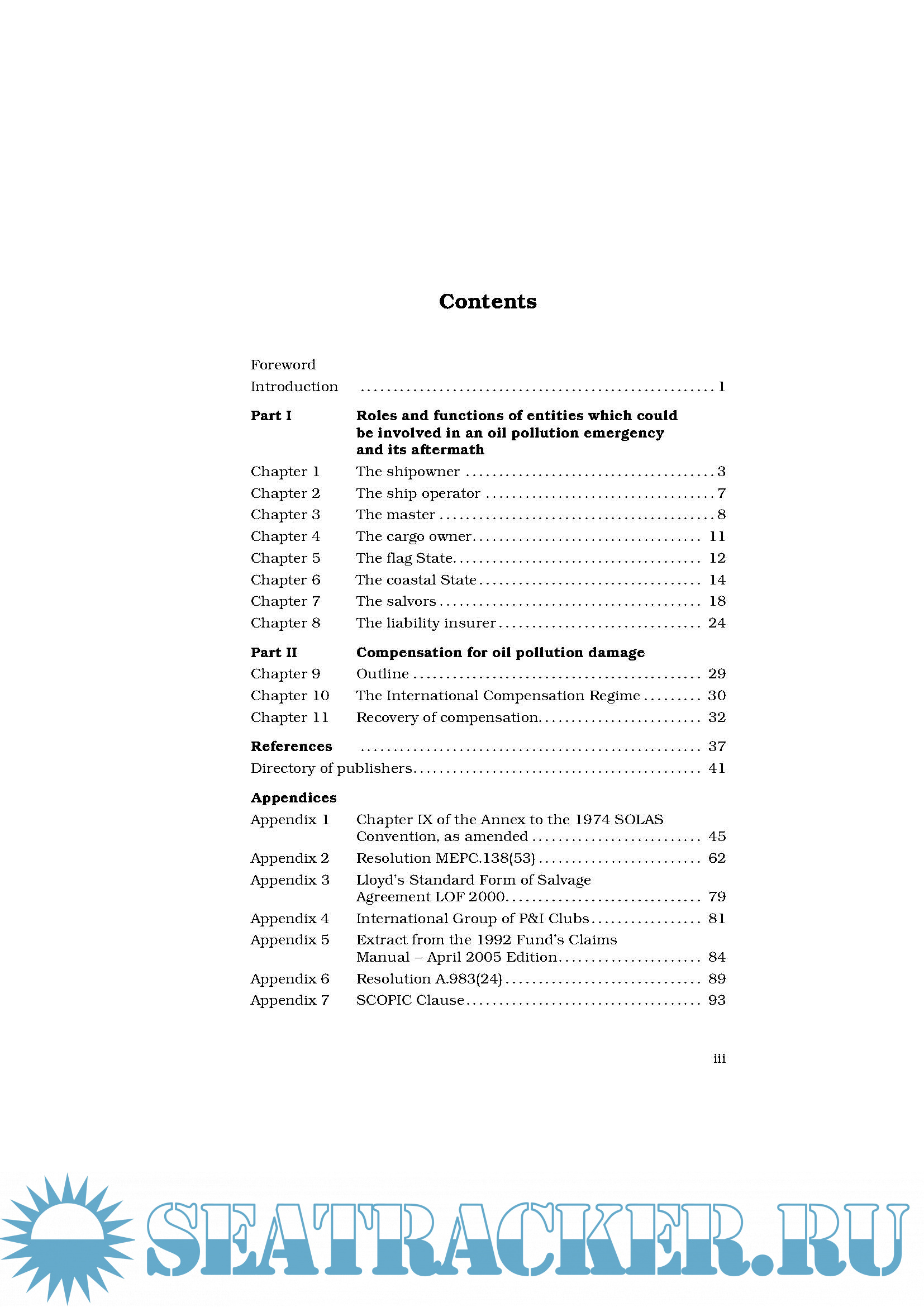 Year: 2009 Language: english Author: IMO Genre: Manual Publisher: CPI Group Edition: Second ISBN: 978-92-801-1500-0 Format: PDF Quality: eBook Pages count: 108 Description: This section provides the reader, in particular on-scene commanders, lead agencies and others involved in the management of oil pollution response, with an appreciation of the various interests involved in an oil pollution emergency and its aftermath, as well as a general review of the international legal regimes governing limitation of liability and compensation for oil pollution damage.