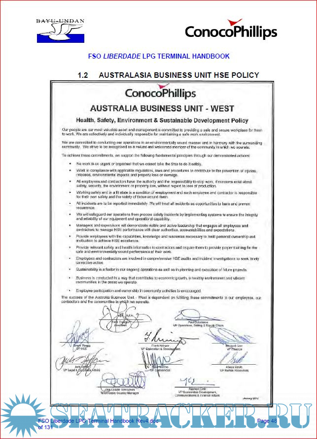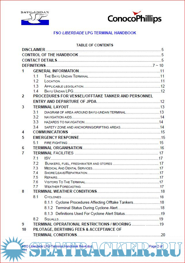 Description: This Terminal Handbook has been prepared by ConocoPhillips (03-12) Pty Ltd, the Unit Operator of the Terminal, for the benefit of masters, owners and agents of Offtake Tankers.