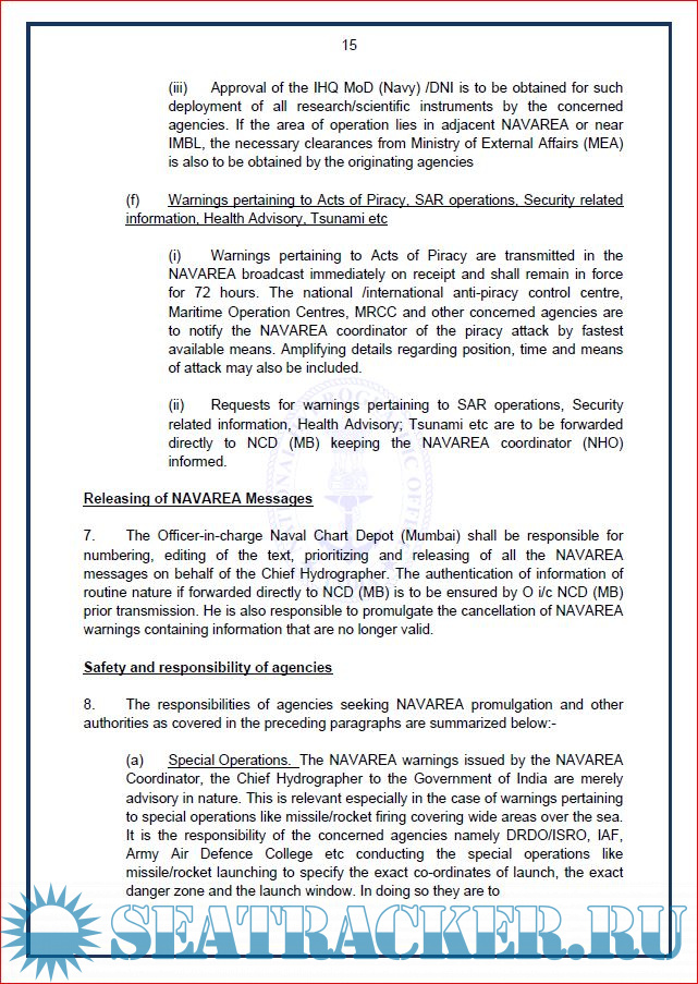 Description: These guidelines have been prepared incorporating the recommendations of all concerned agencies with a view to streamline the procedure for promulgation of Navarea Warnings.