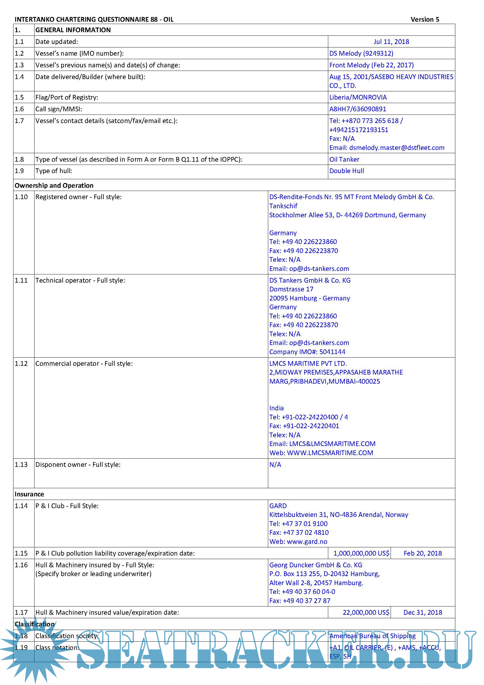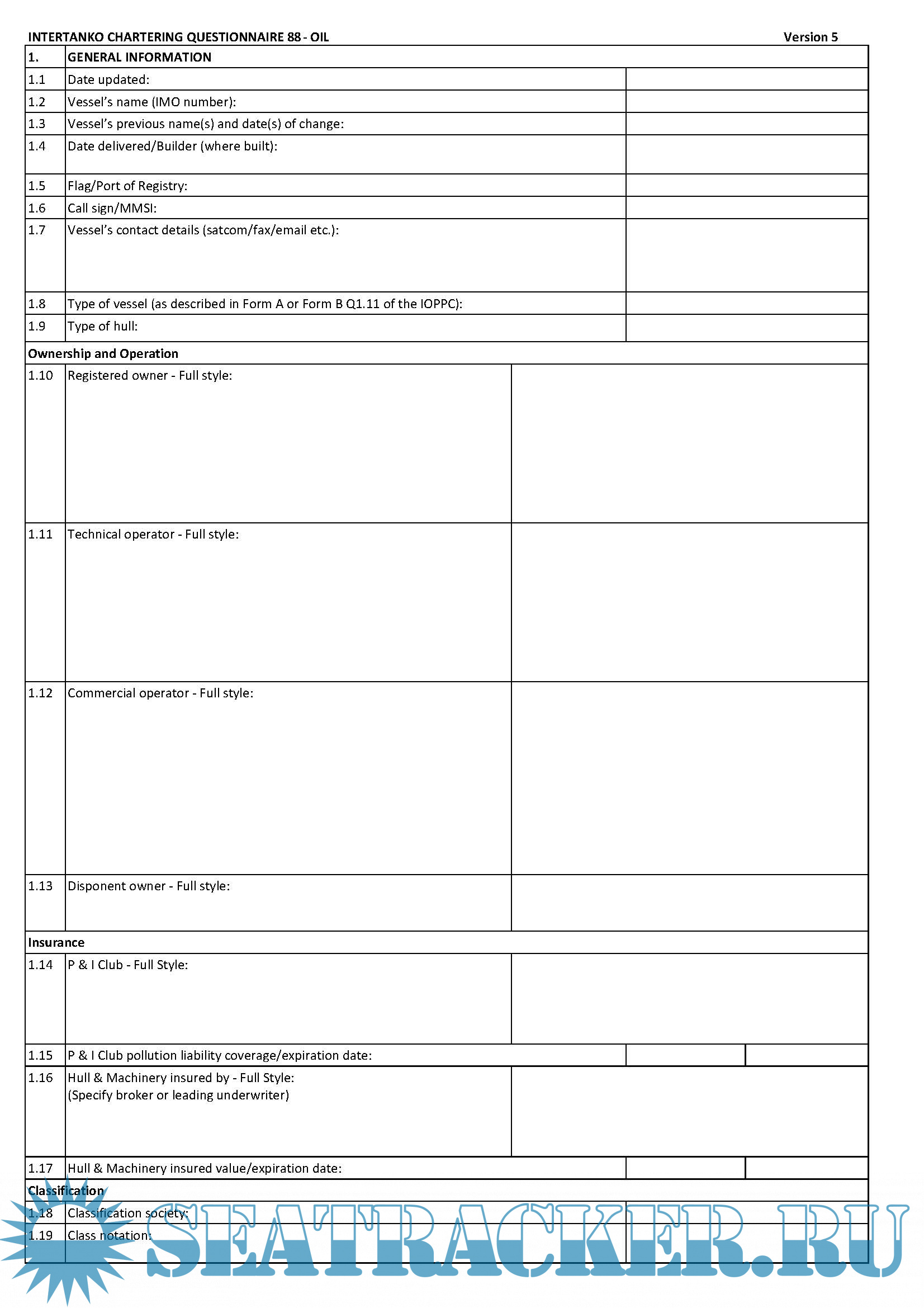 Intertanko Chartering Questionnaire 88 - OIL, Version 5