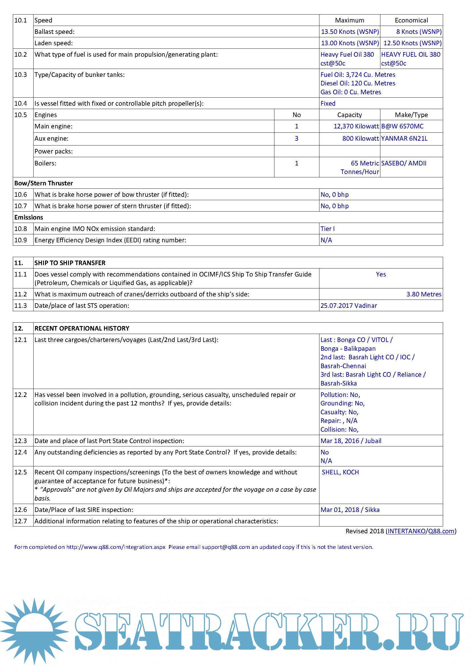 Description: The Questionnaire 88 (Q88), first issued in 1988 by INTERTANKO, has been revised to include the most up-to-date information for assessing vessel suitability and risk when chartering tankers. The Questionnaire, now in its 5th version, is the established industry standard for information on ships for commercial screening (vetting) purposes.