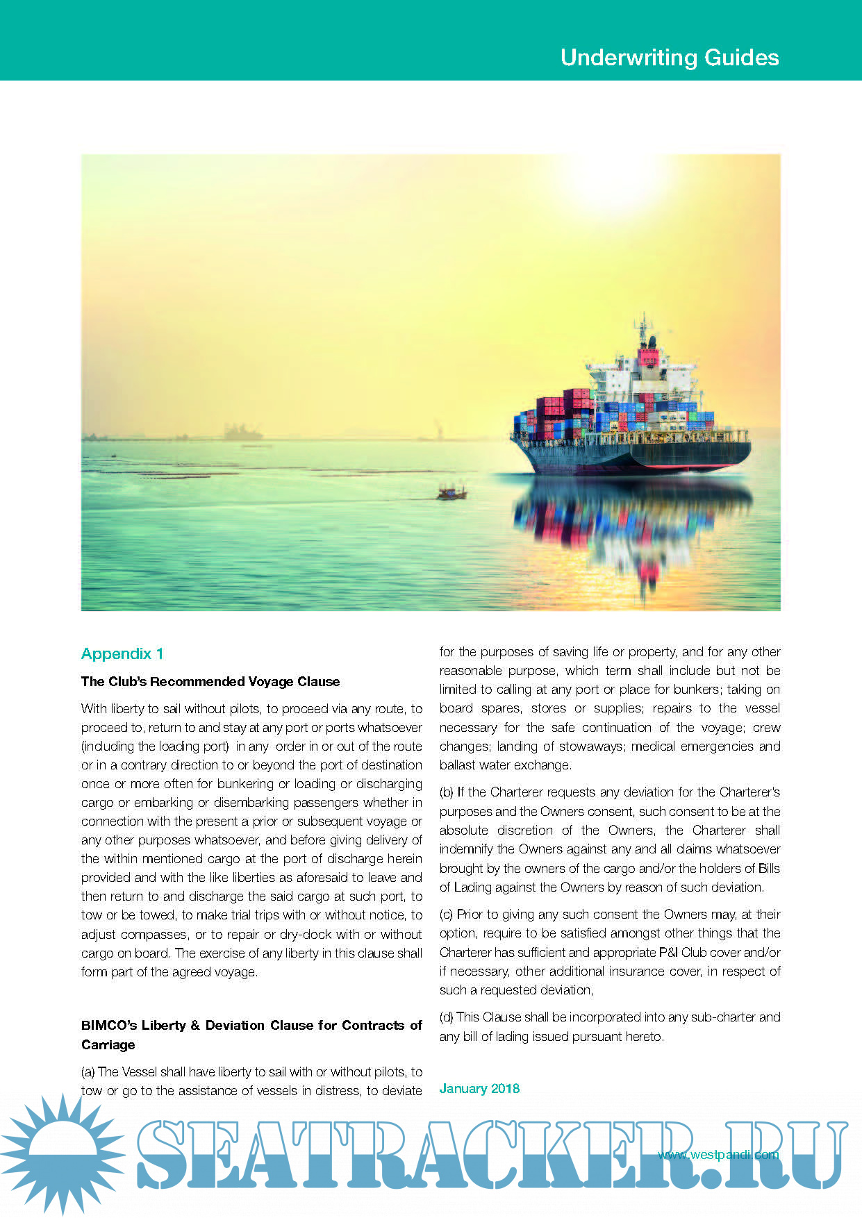 Description: Underwriting Guides of West of England P&I Club regarding Geographical Deviation and Cover in Respect of Visitors to Vessels.