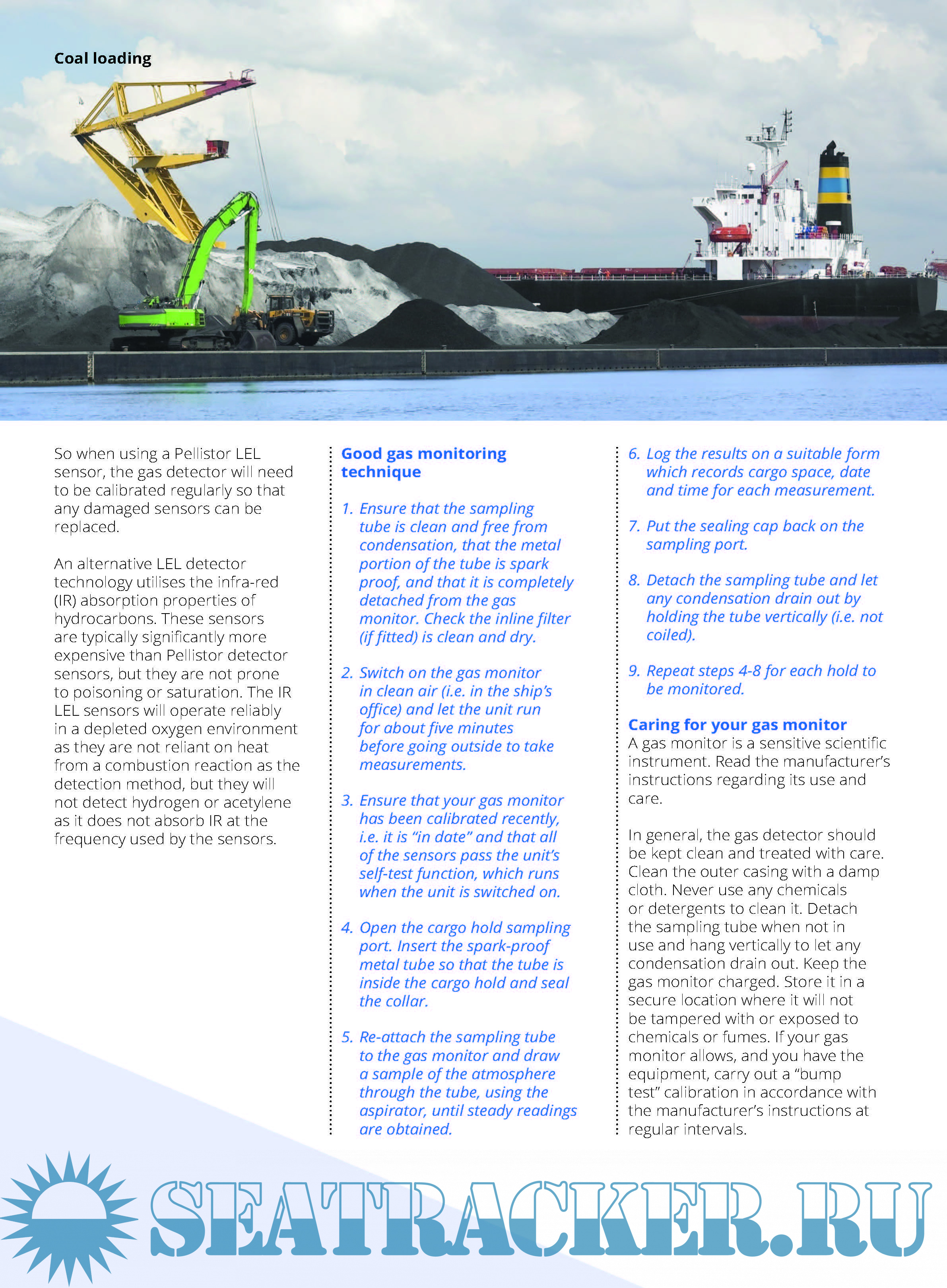 Gas detection and monitoring equipment, page 1 Good gas monitoring technique, page 4 Caring for your gas monitor, page 4 Ventilation of a coal cargo, page 5