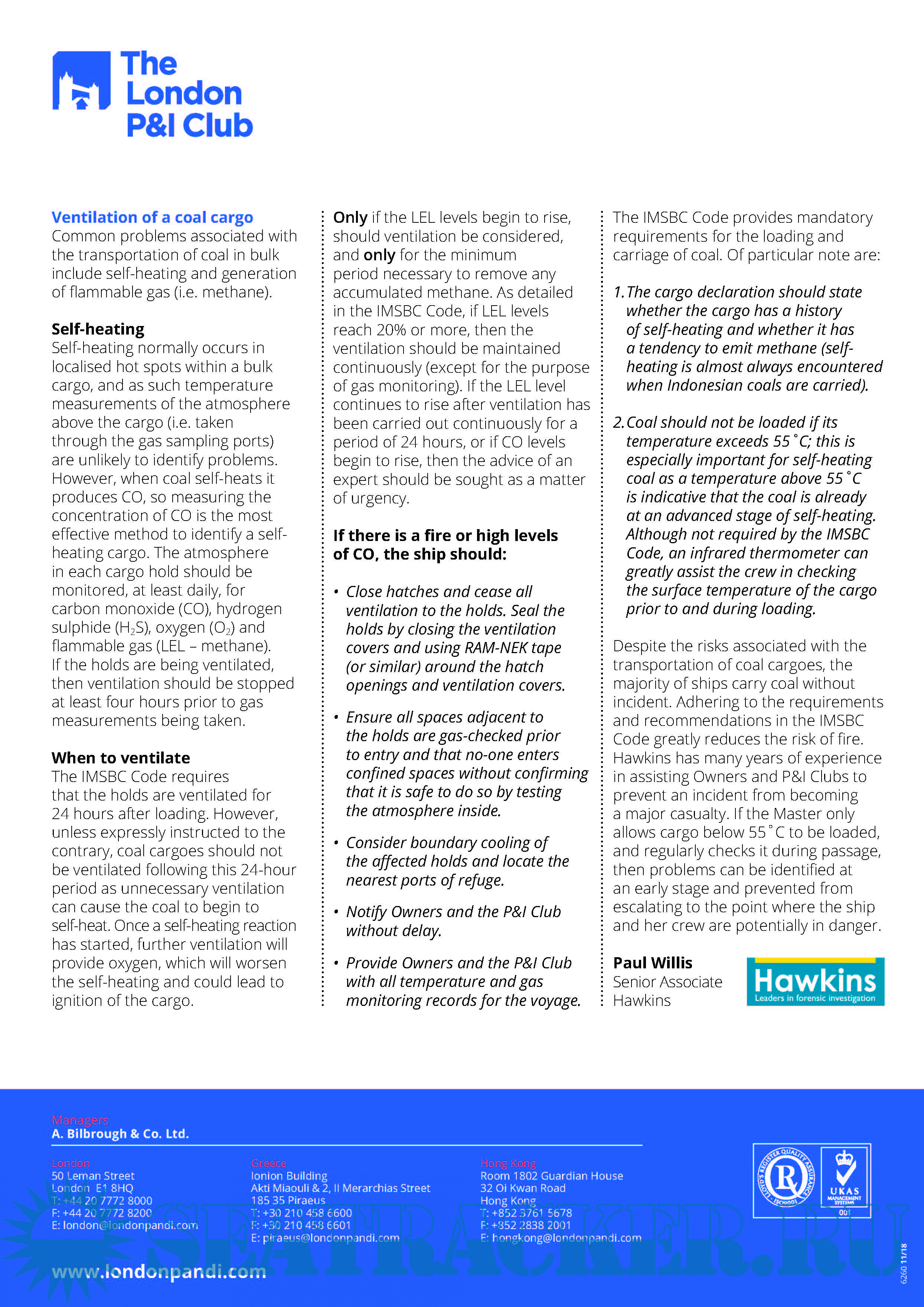Year: 2018 Language: english Author: The London P&I Genre: Guide Format: PDF Quality: eBook Pages count: 5 Description: Management of coal cargoes and proper use of gas detection equipment are key to preventing coal fire claims.