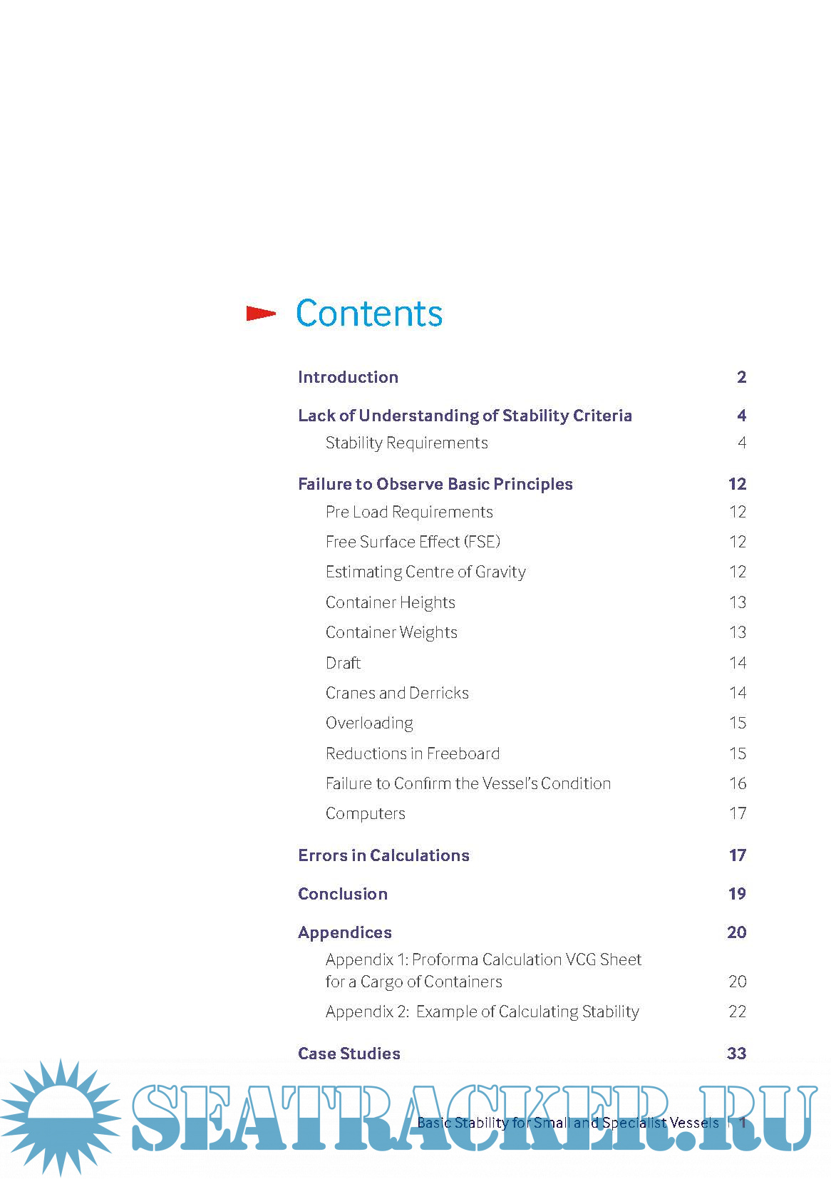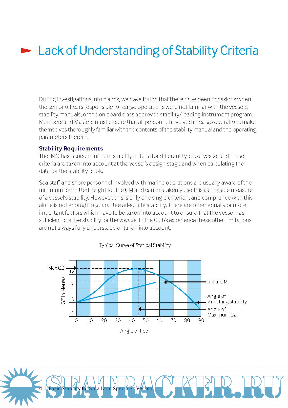 Appendix 2 contains a number of stability calculation examples and the Case Studies describe the circumstances leading to actual related claims dealt with by the Club.